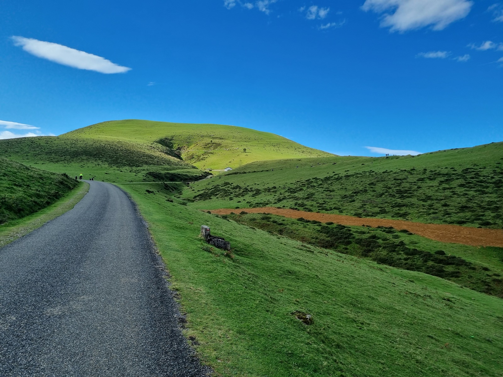 완만하지만 오르막이 계속되는 포장 길이다. 피레네 산맥 정상부 능선을 오르고 부드러운 언덕 지나듯 오리송봉을 지난다. 산맥 정상부 능선은 심한 강풍이 불어 오므로 악천후 주의