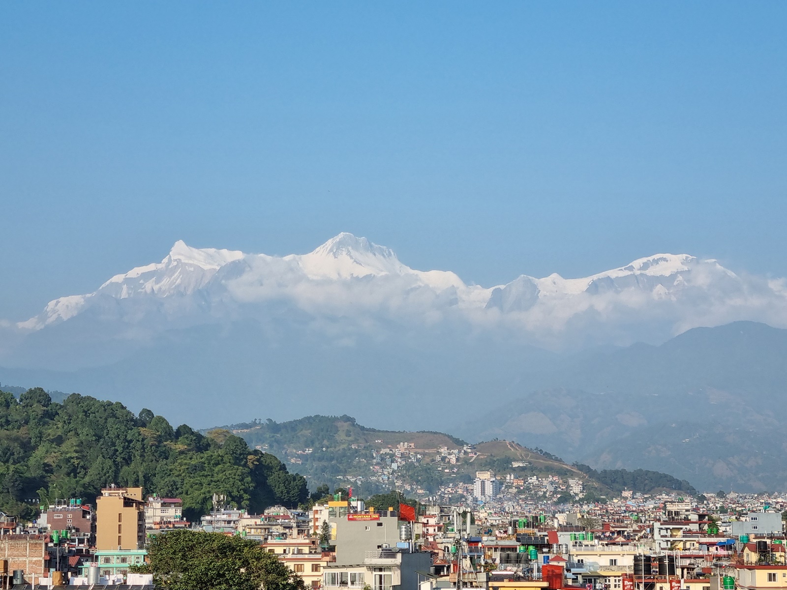 ▲ 호텔 옥상으로 올라가 가까이 페와호수와 멀리 히말라야 산군들을 잡아 본다