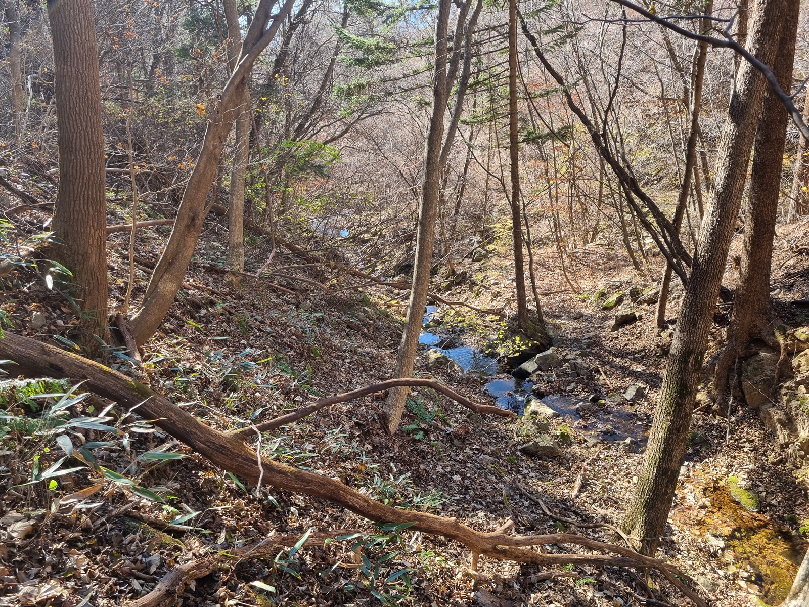 ▲ 골짜기를 따라 내려가는 길이 보이지 않는다. 대충 이리저리 계곡을 여러번 건너면서 내려가다 보면