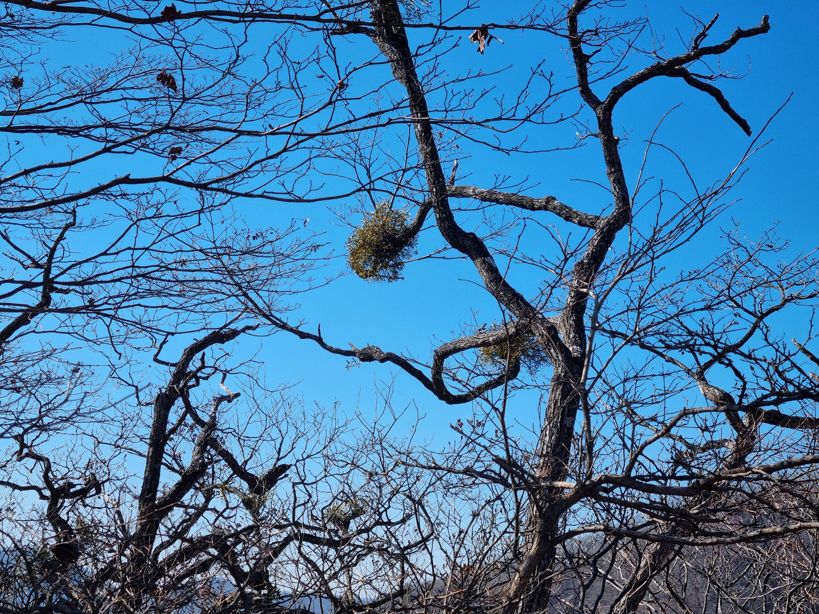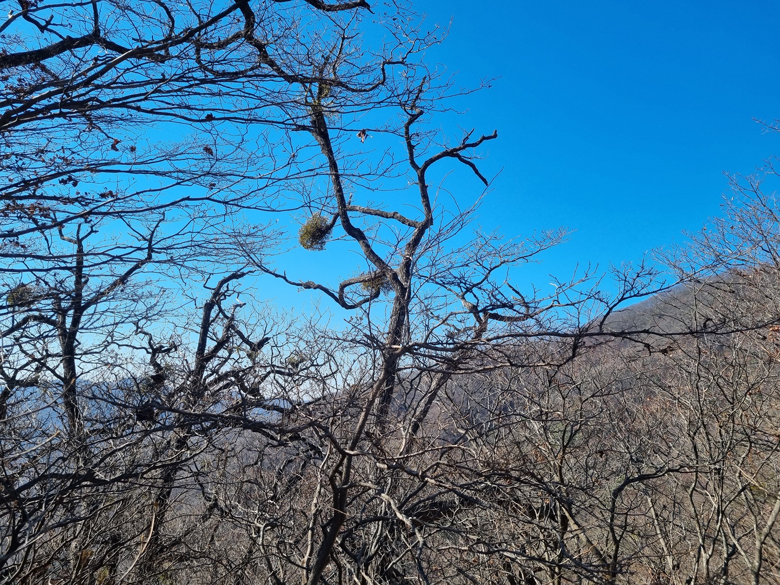 ▲ 높은 나무가지에 달려 있는 겨우살이