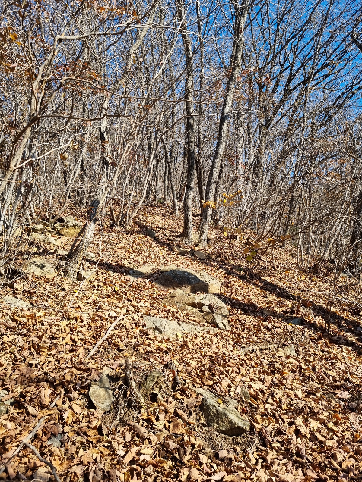 ▲ 흥정산은 부드러운 육산 형태 모습이지만 등로에 들어서니 이런 까다로운 돌길이 계속해서 나타난다