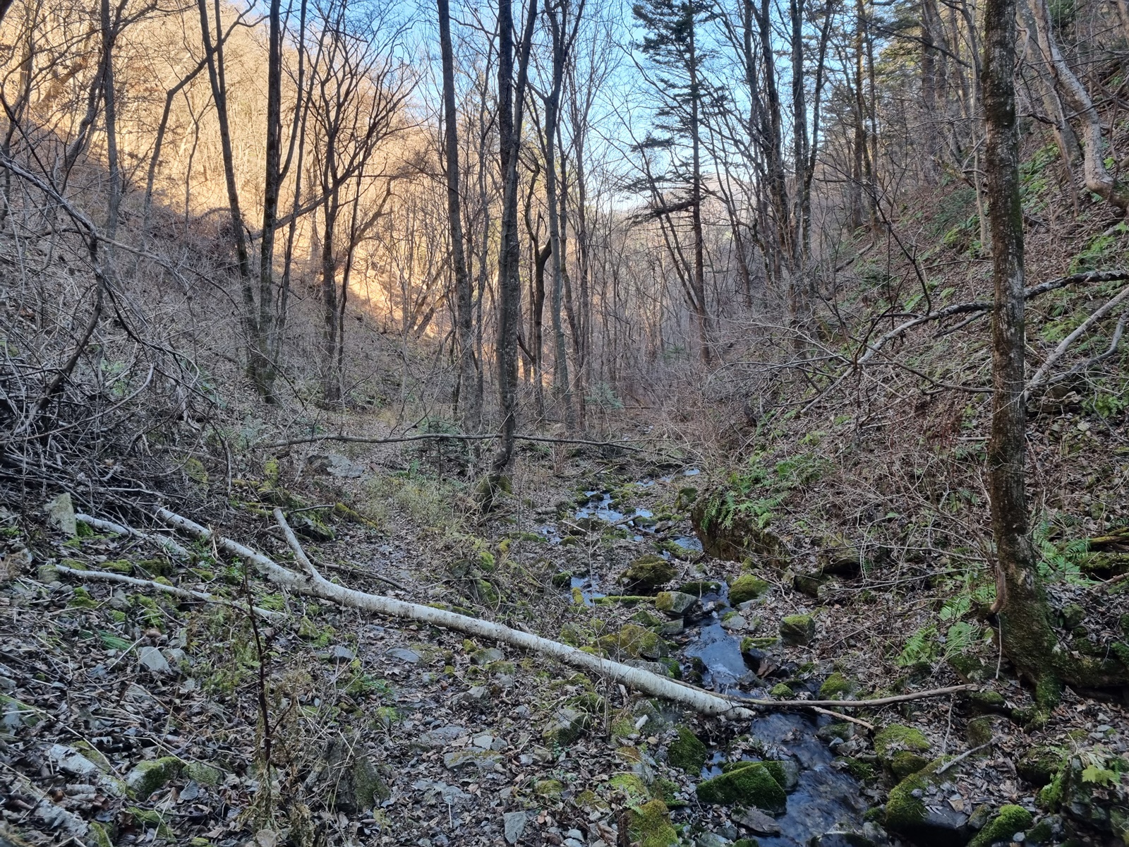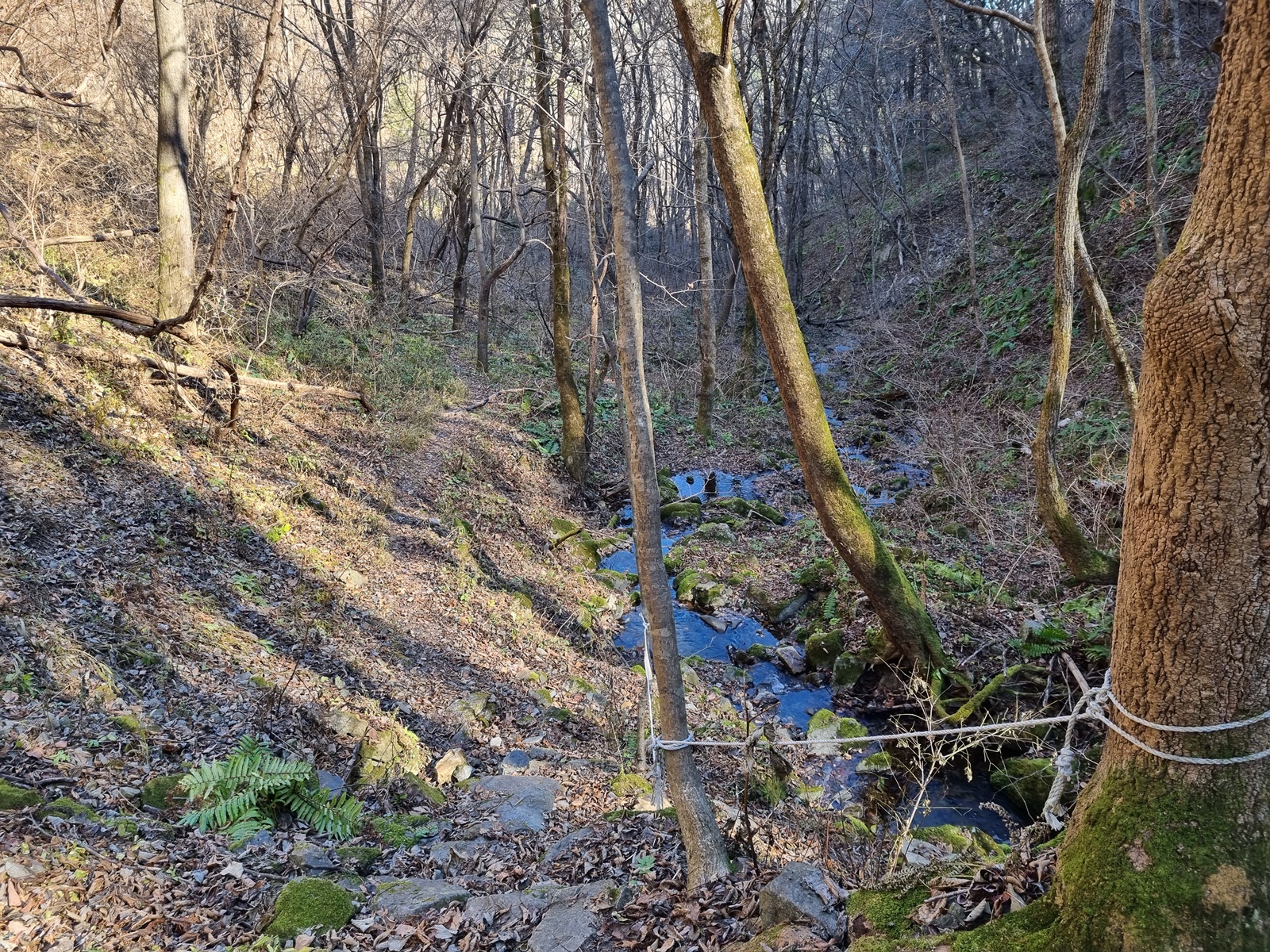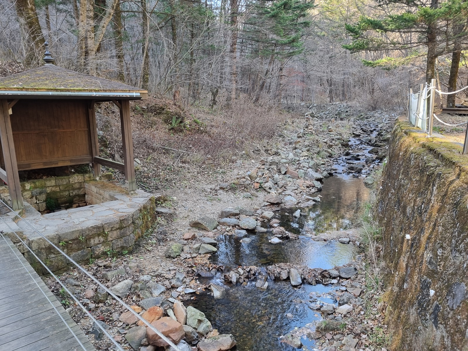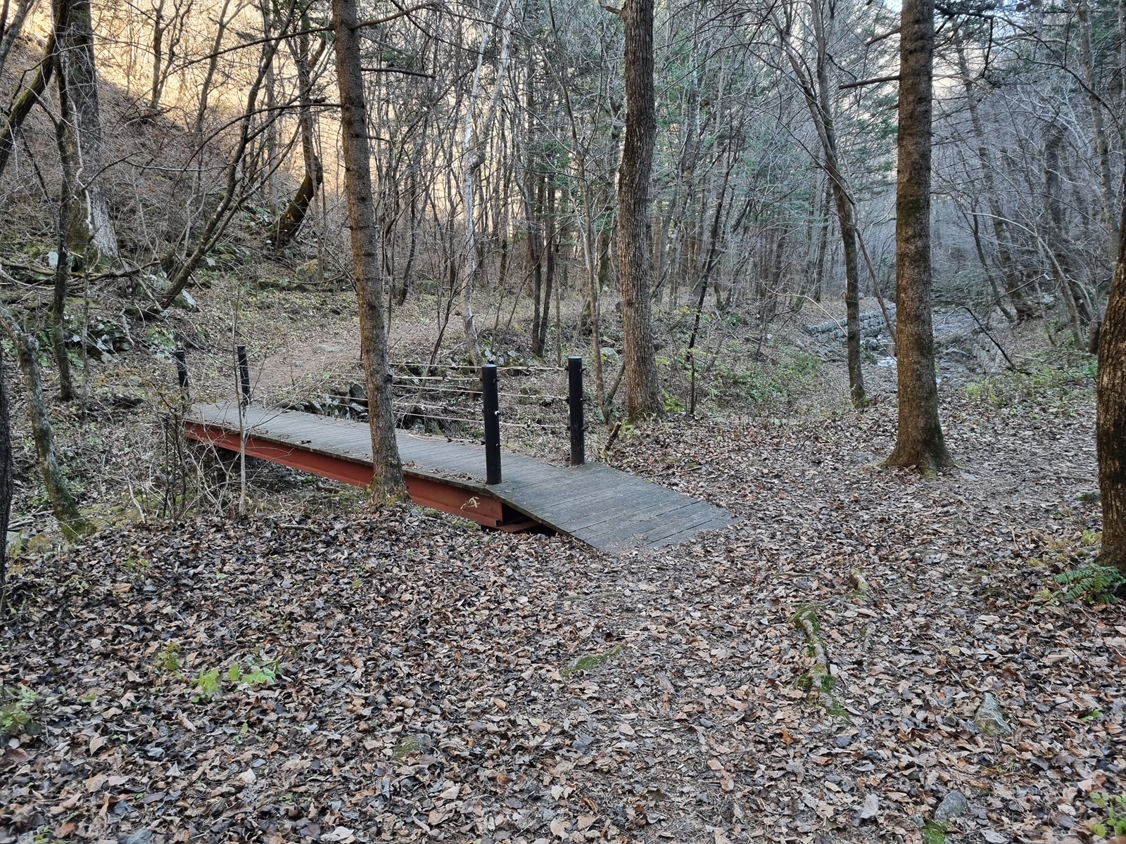 ▲ 여러번 계곡을 왔다갔다 하면서 삼봉약수 주차장으로 하산한다