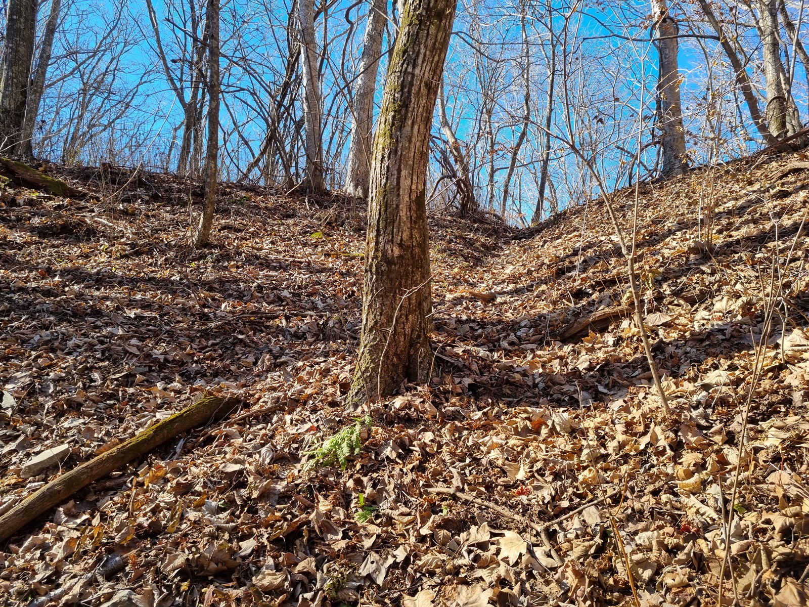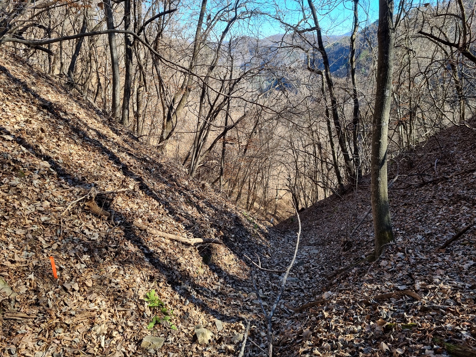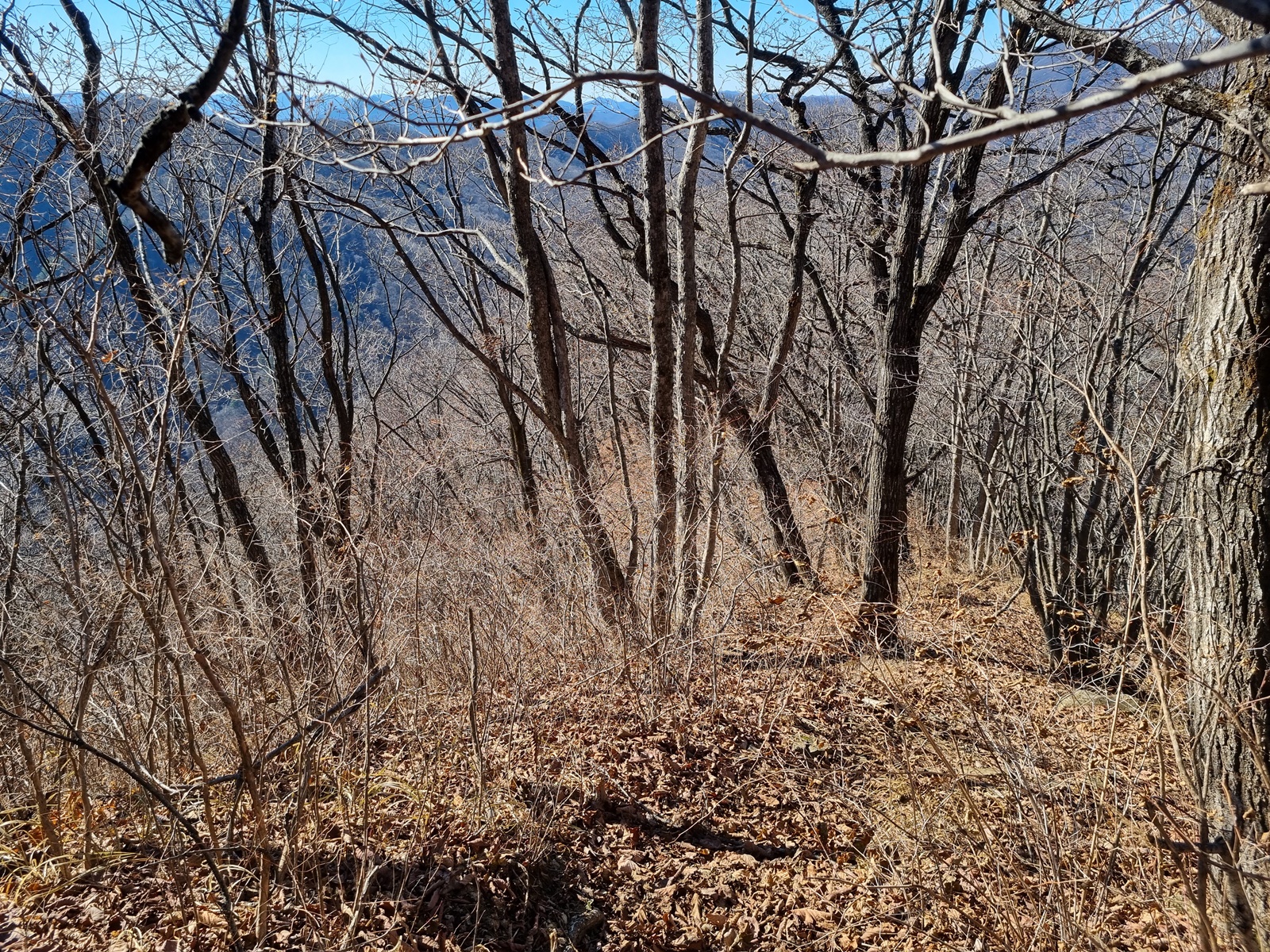 ▲ 완만한 오르막으로 매봉령 능선을 향해 오른다. 낙엽이 쌓이고 인적이 드문 길이라 길찾기가 쉽지 않다
