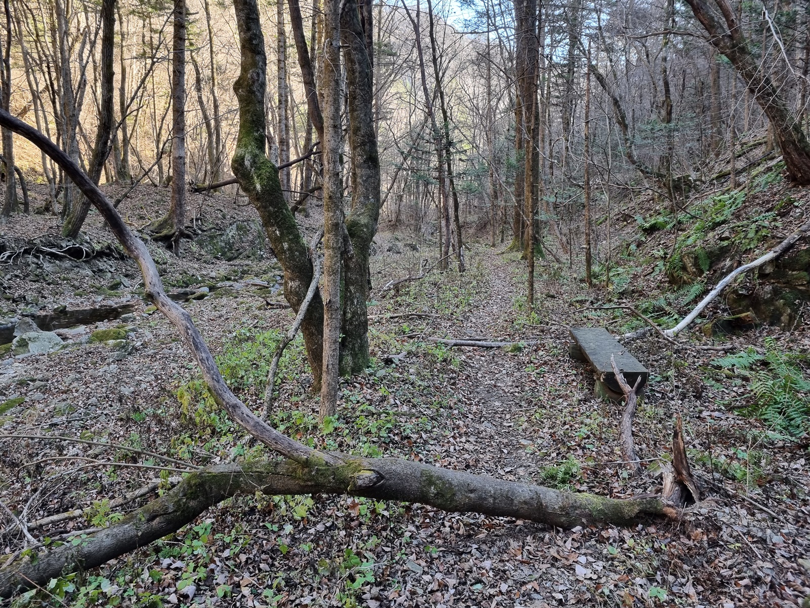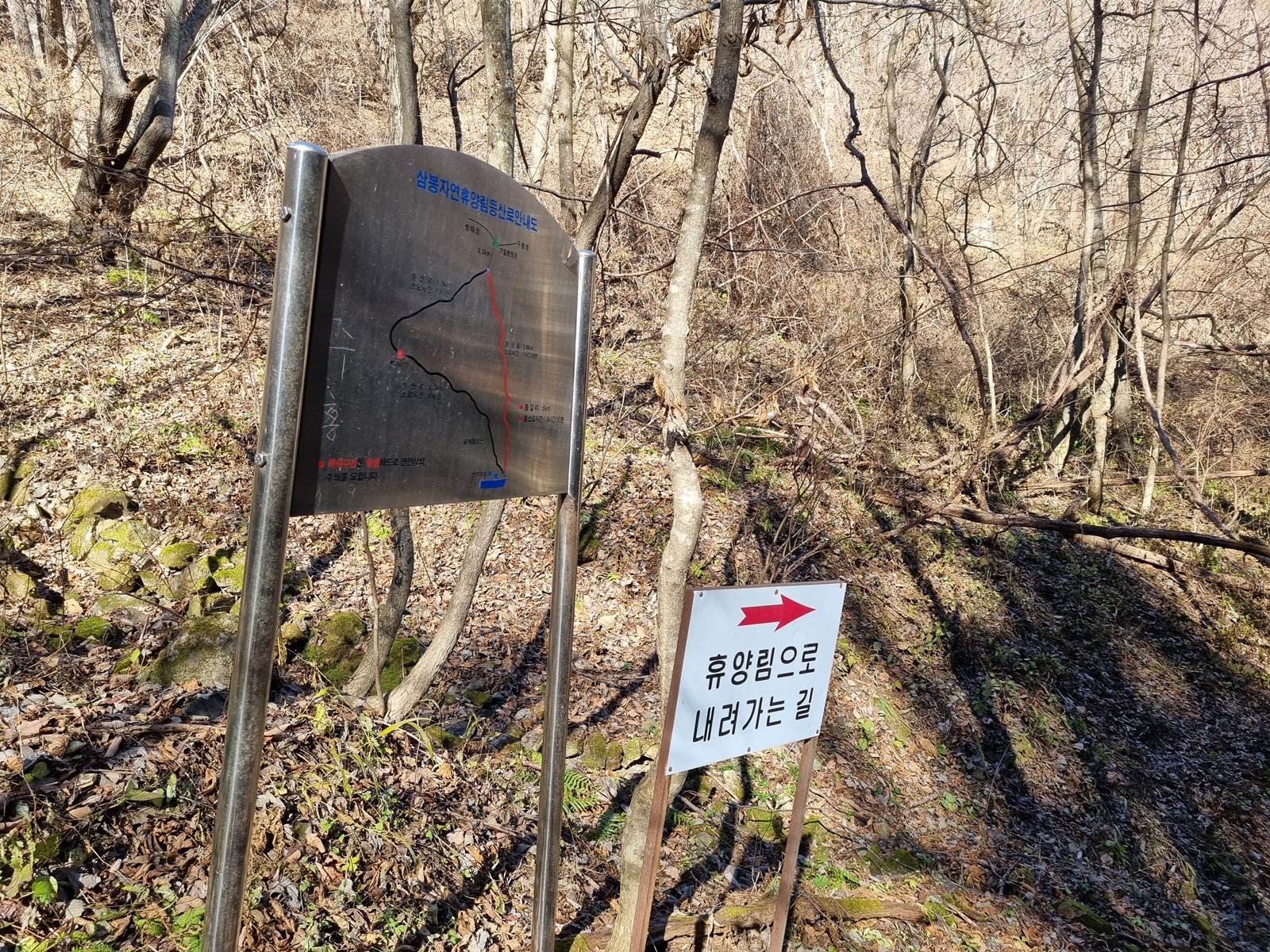▲ 삼거리로 되돌아 내려와 실론계곡쪽으로 급경사 하산