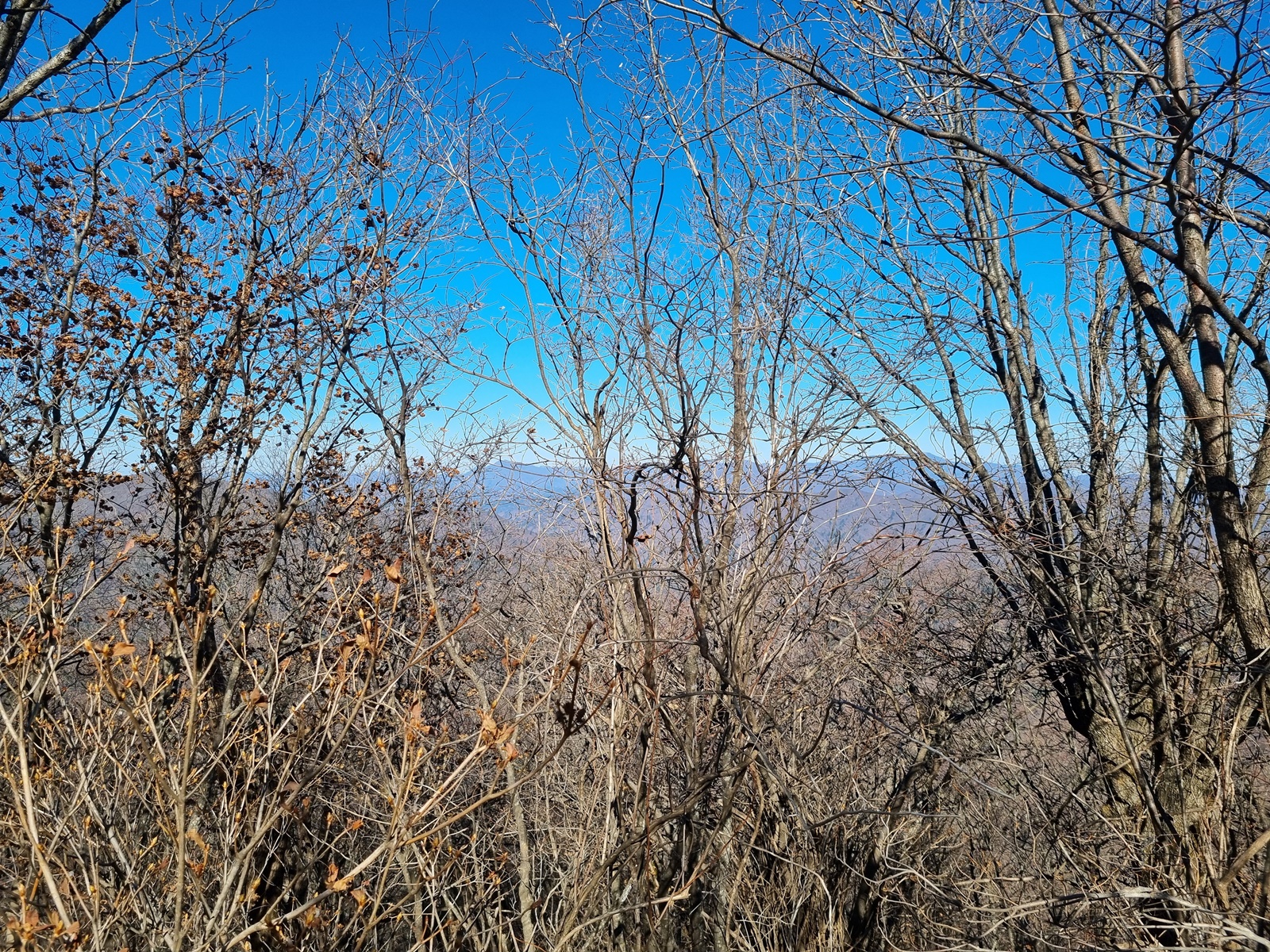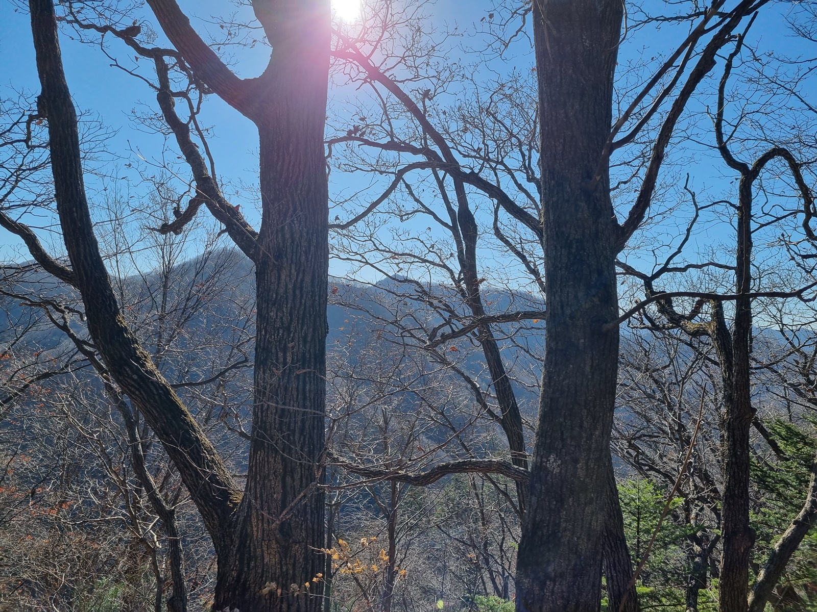 ▲ 북쪽 설악산 능선은 나무가지에 가려버려 그 산그리메만 구분할 수 있고