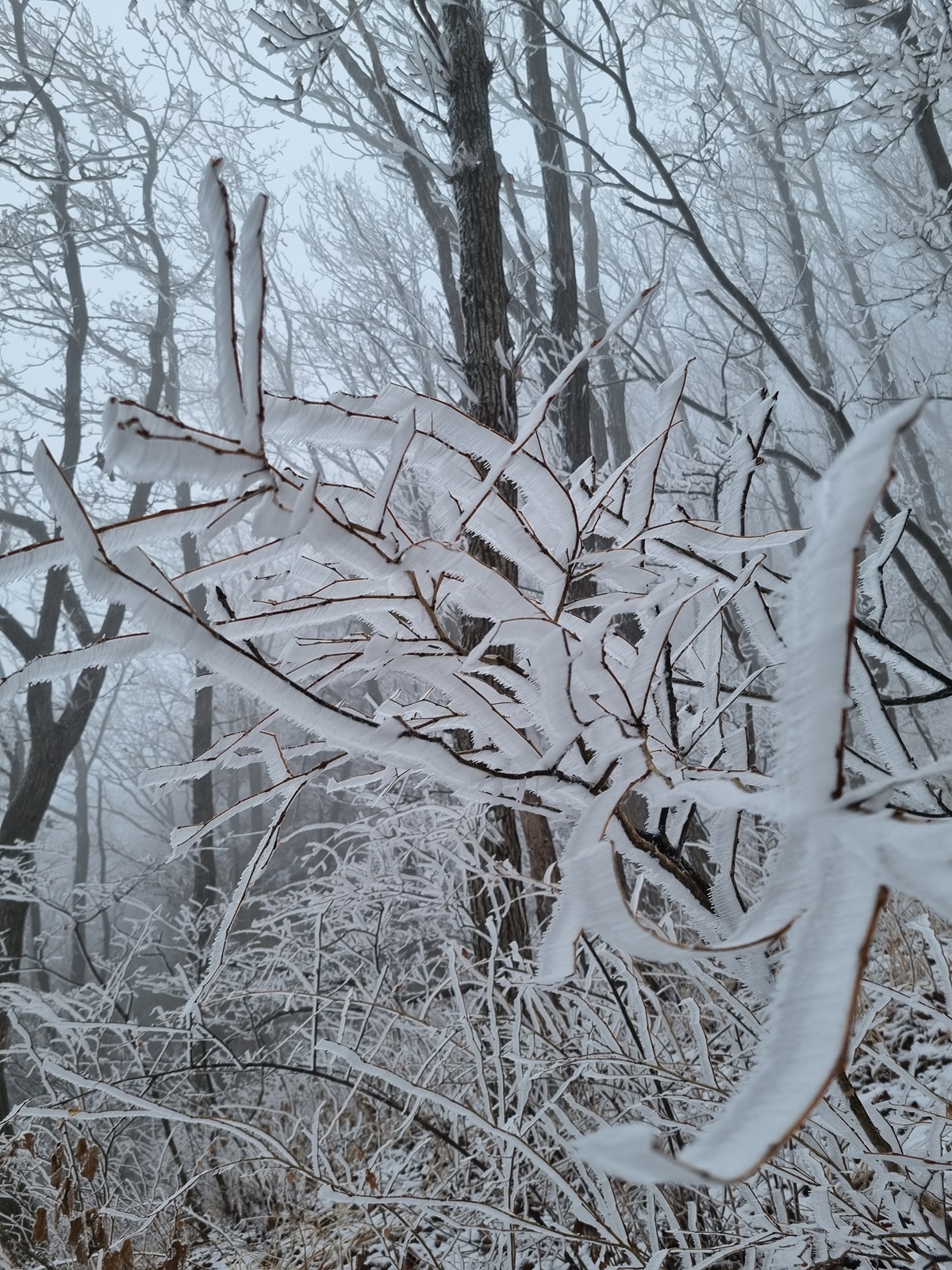 ▲ 정상이 얼마남지 않았다는 안도감에 환상적으로 피어있는 눈꽃들을 담아보고
