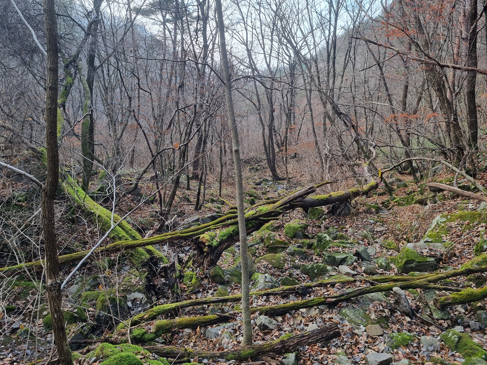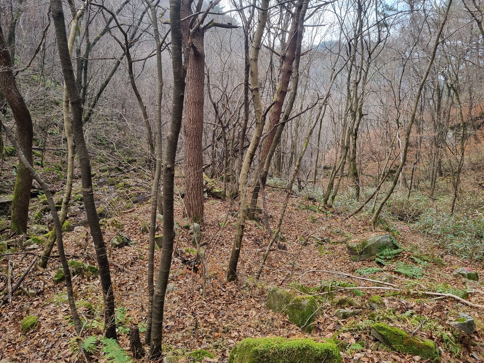 ▲ 산행 초입부터 등로를 찾지 못해 이리저리 헤매고. 낙엽이 두텁게 깔려 있고 오가는 이들이 없으니 등로가 보이지 않는다