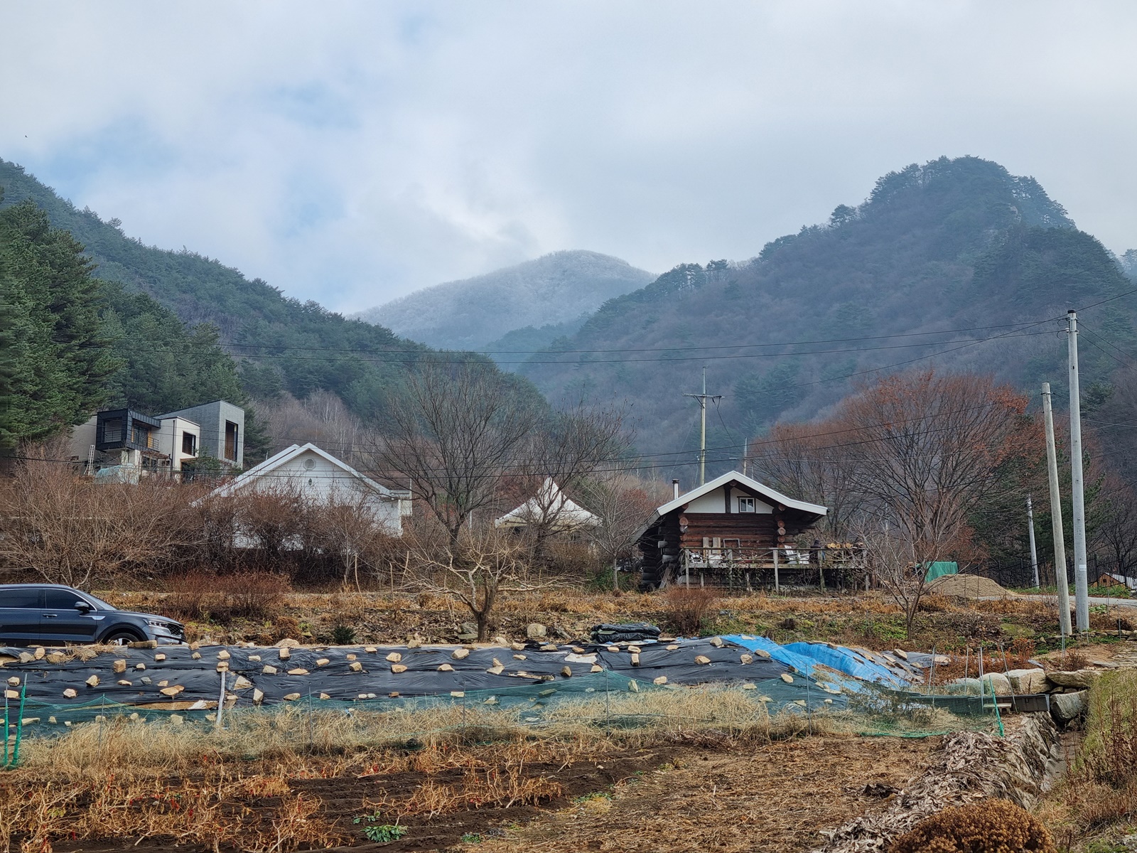 ▲ 평창군 용평면 재산리 백암동. 금당산-거문산-고두산을 산행후 백암동 마을로 원점회귀하고자 백암동 초입에 승용차를 주차하고 산행준비를 한다