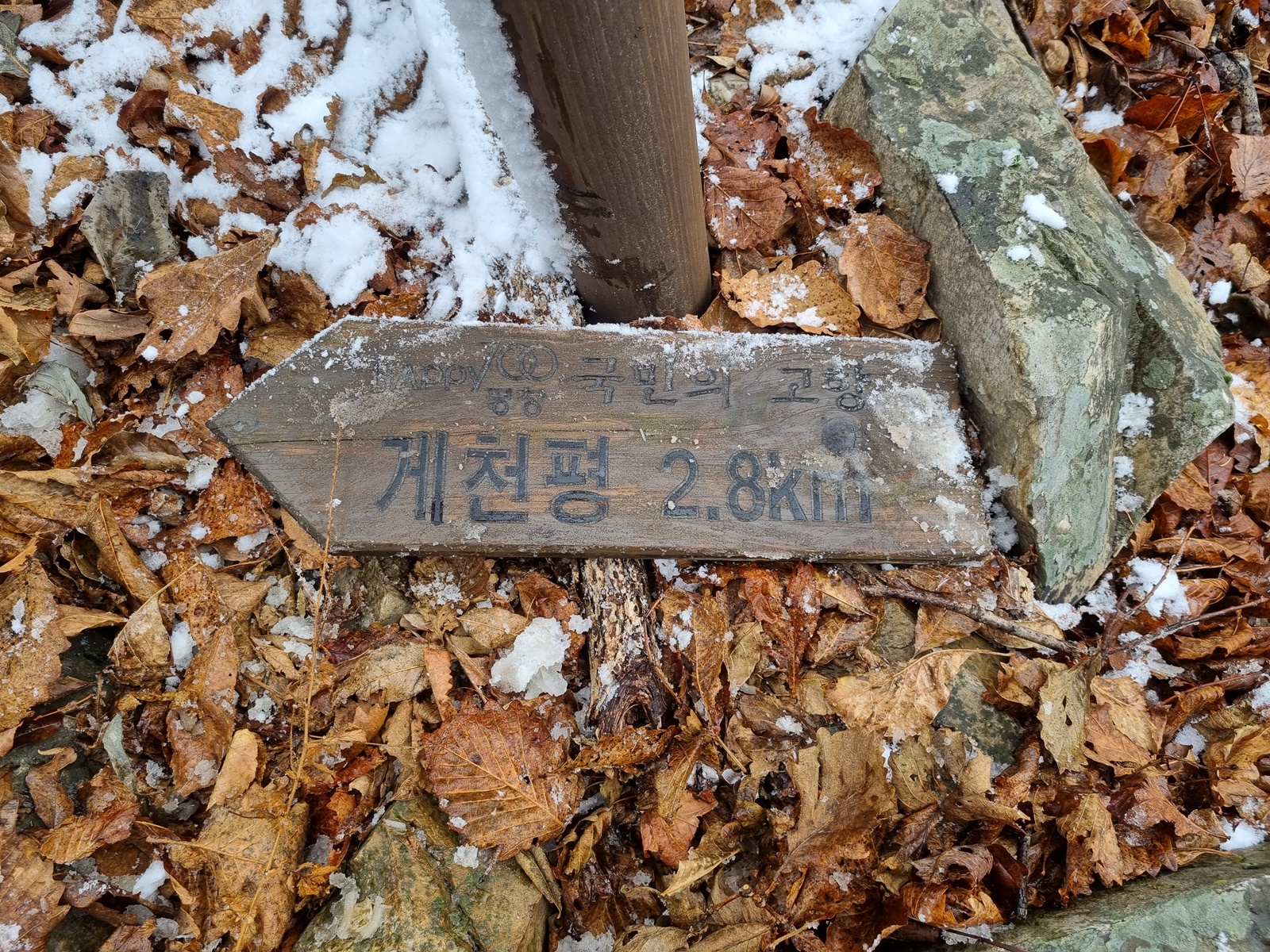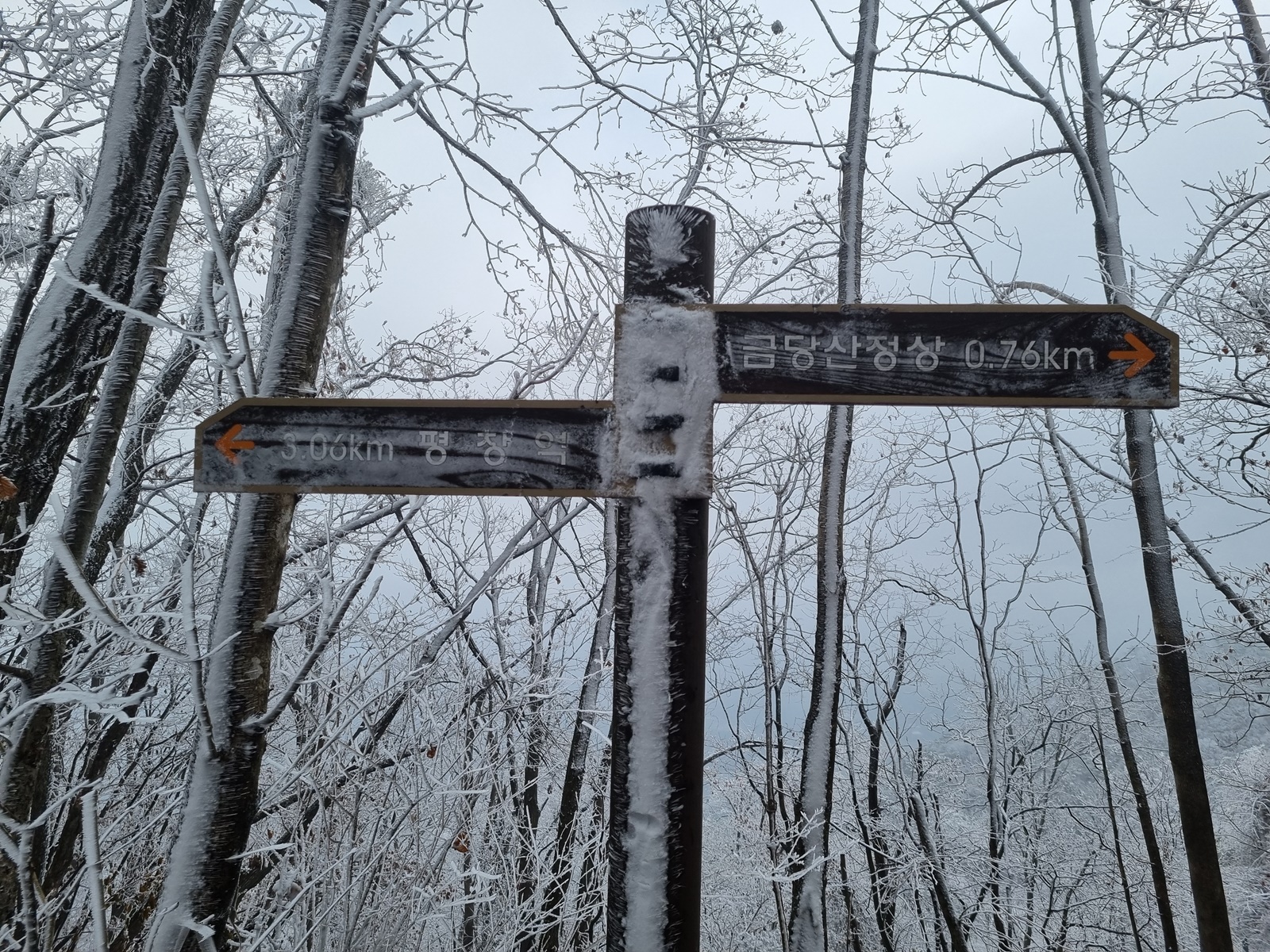▲ 평창역 갈림길 이정표. 평창역에서 올라오는 길이 2개라서 이정표도 2개이다. 이 곳에서 거문산-고두산을 경유하여 백암동으로 하산하는 계획은 포기하고 금당동으로 하산하기로 산행계획을 변경한다