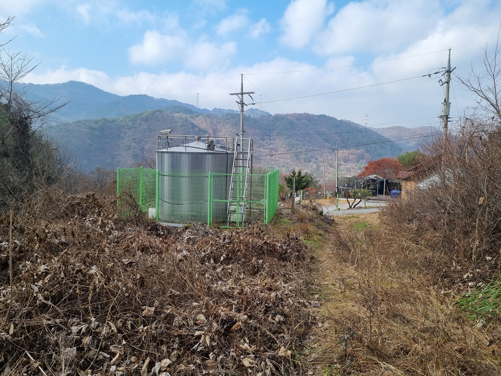 ▲ 마을 물탱크 옆에 오래된 이정표가 서있고