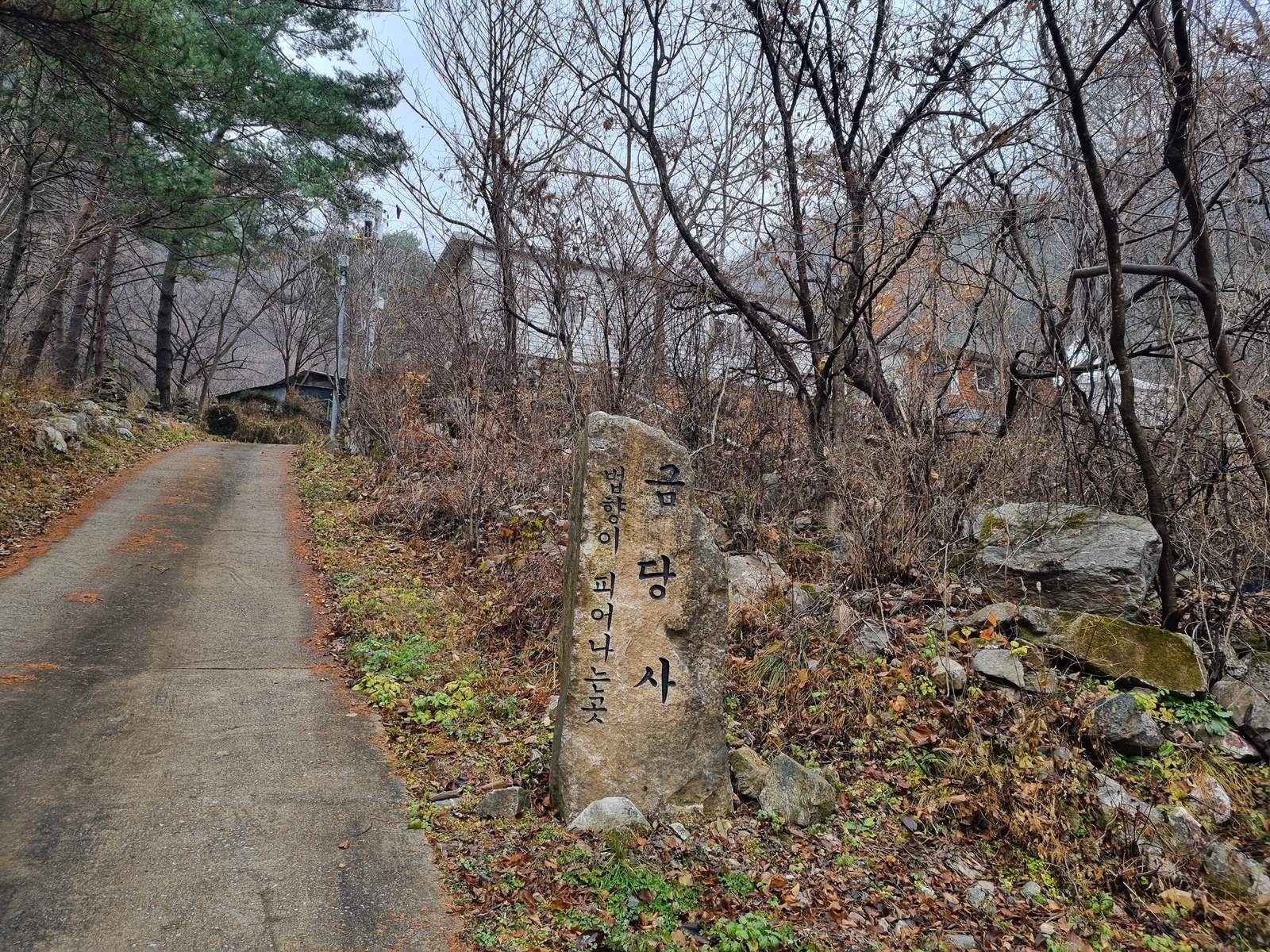 ▲ 백암동 들머리 고도 500이고 금당산 정상이 1174m이니 오늘 산행도 670m 고도를 높혀야 한다. 금당사 오르는 길은 포장되어 있지만 생각보다 급경사이다