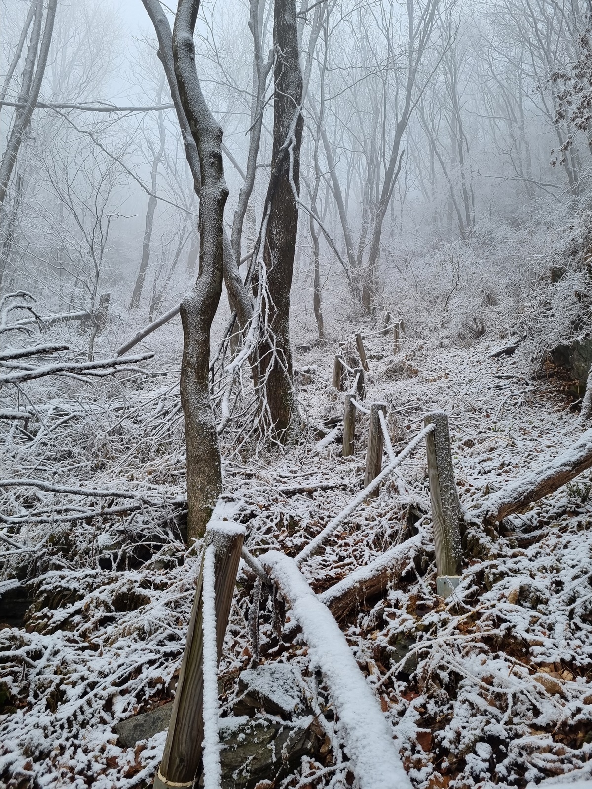 ▲ 내려가는 길이 미끄럽기만 하다. 천천히 조심스럽게 하산하고