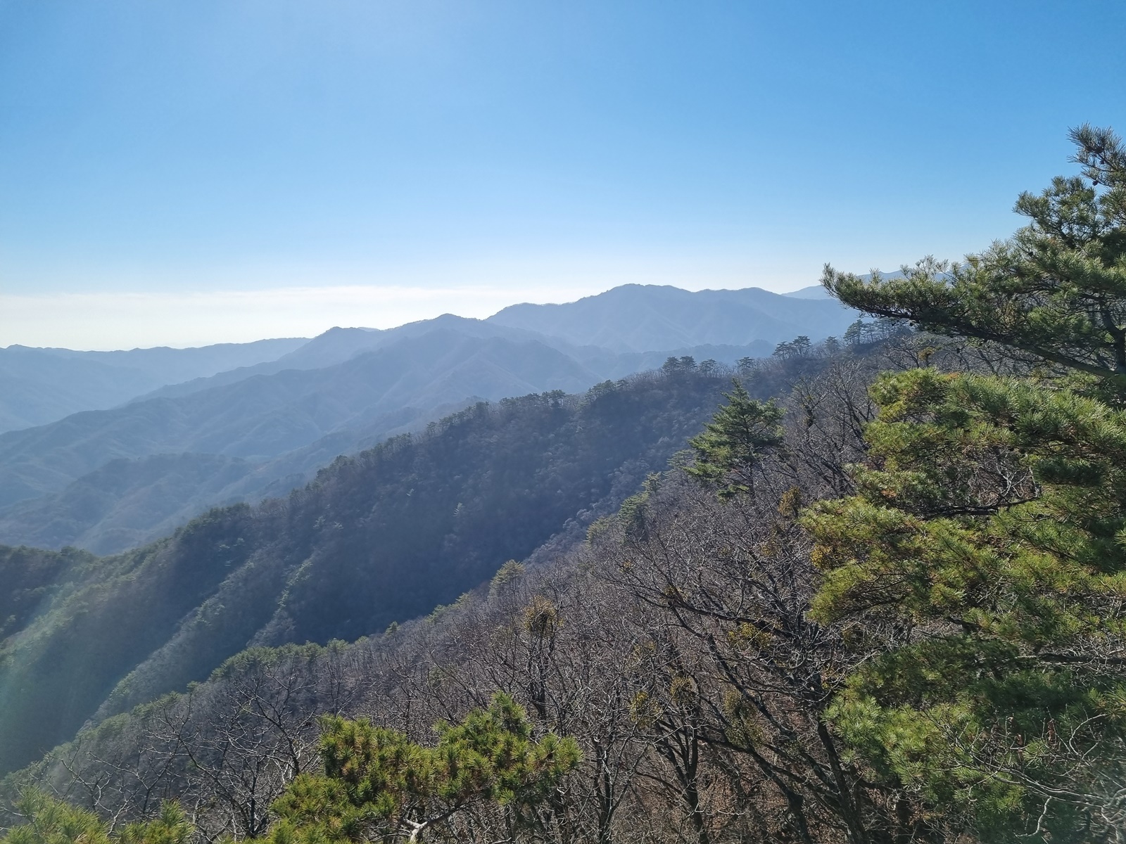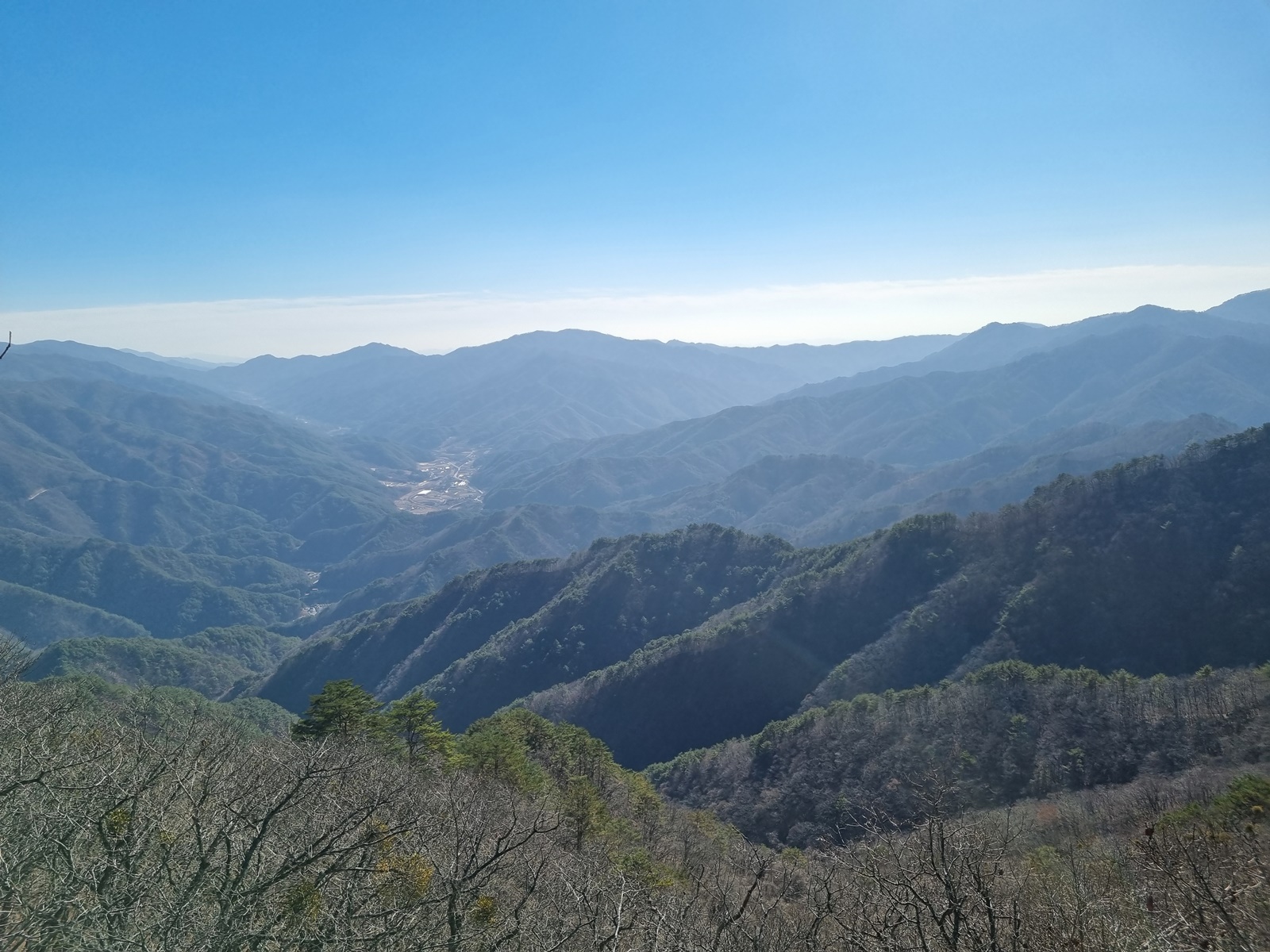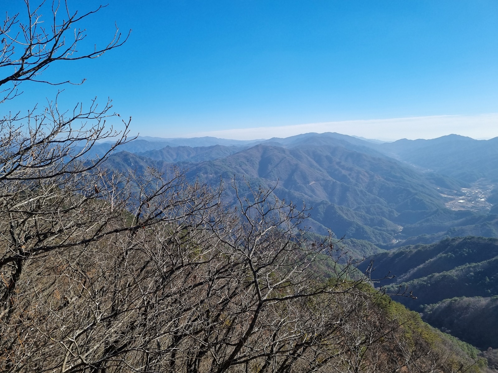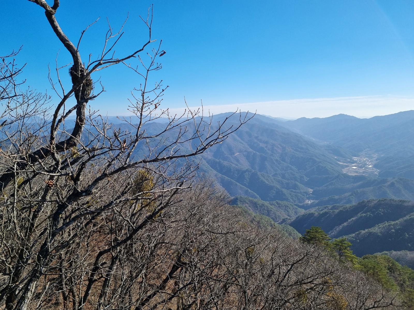 ▲ 남쪽으로 가까이는 마대산. 뒤로 형제봉. 저 멀리 소백산