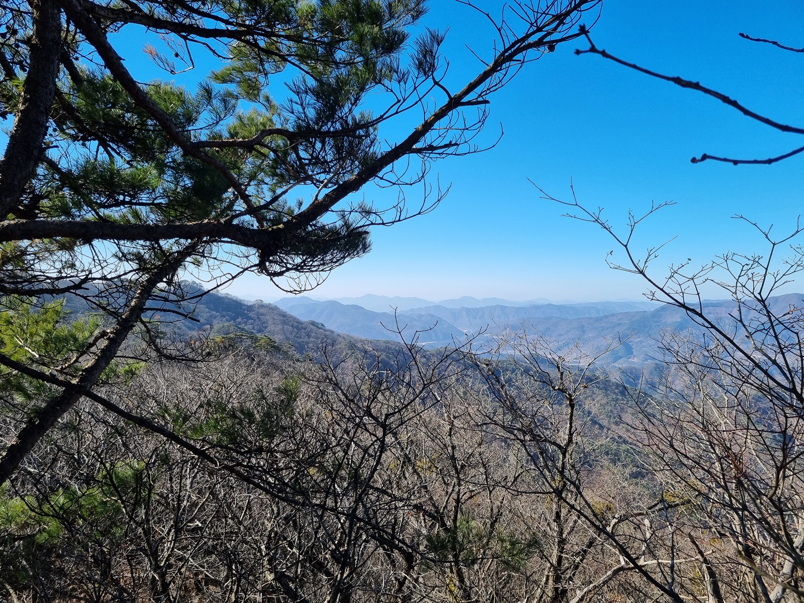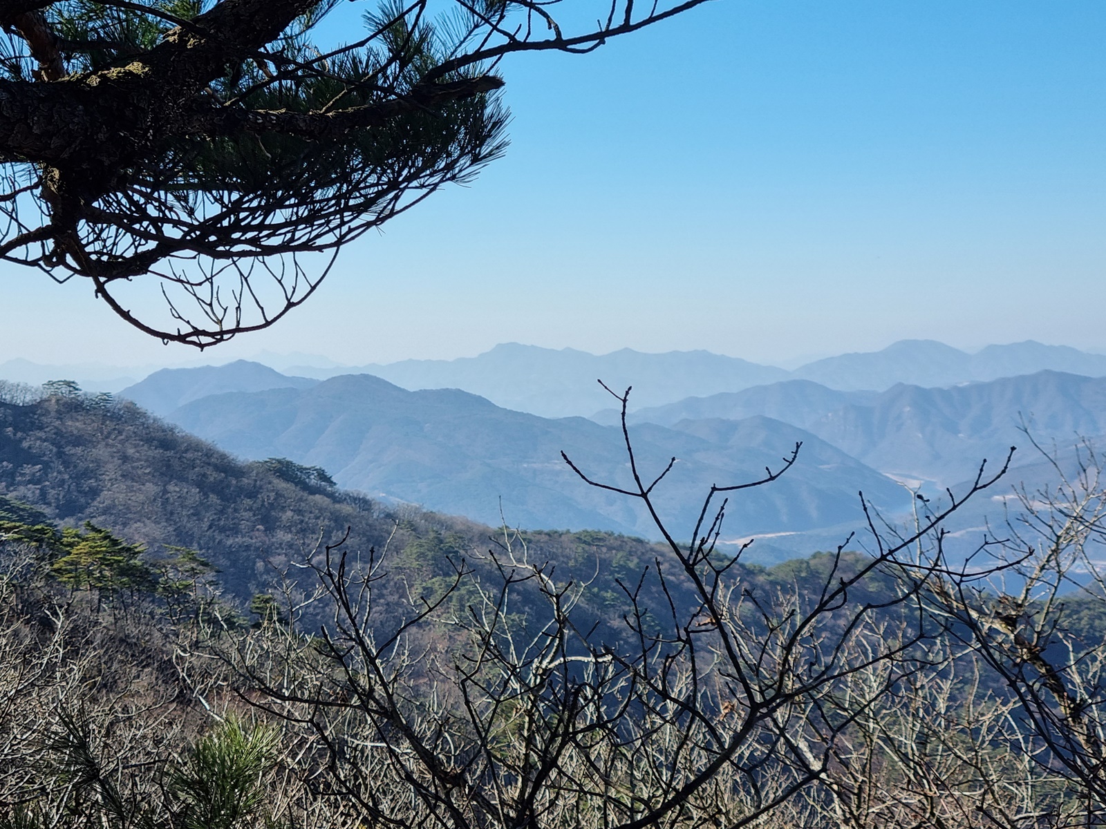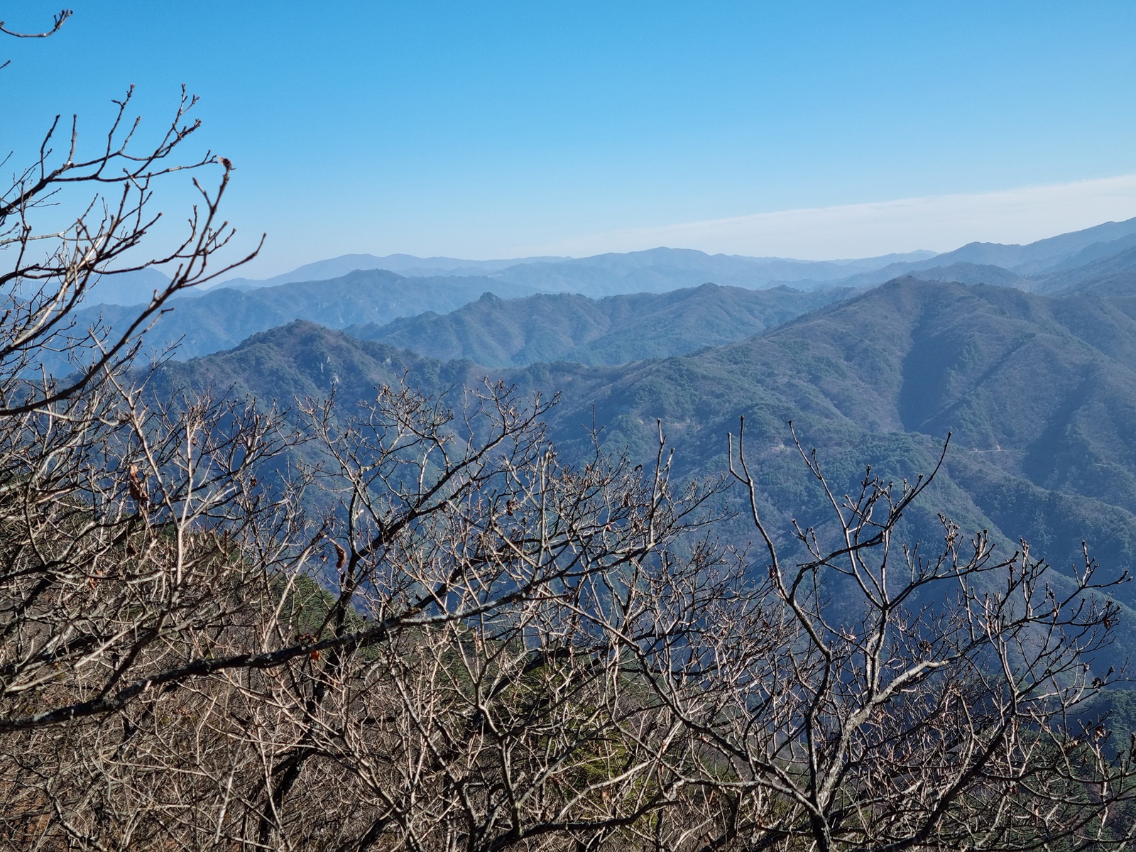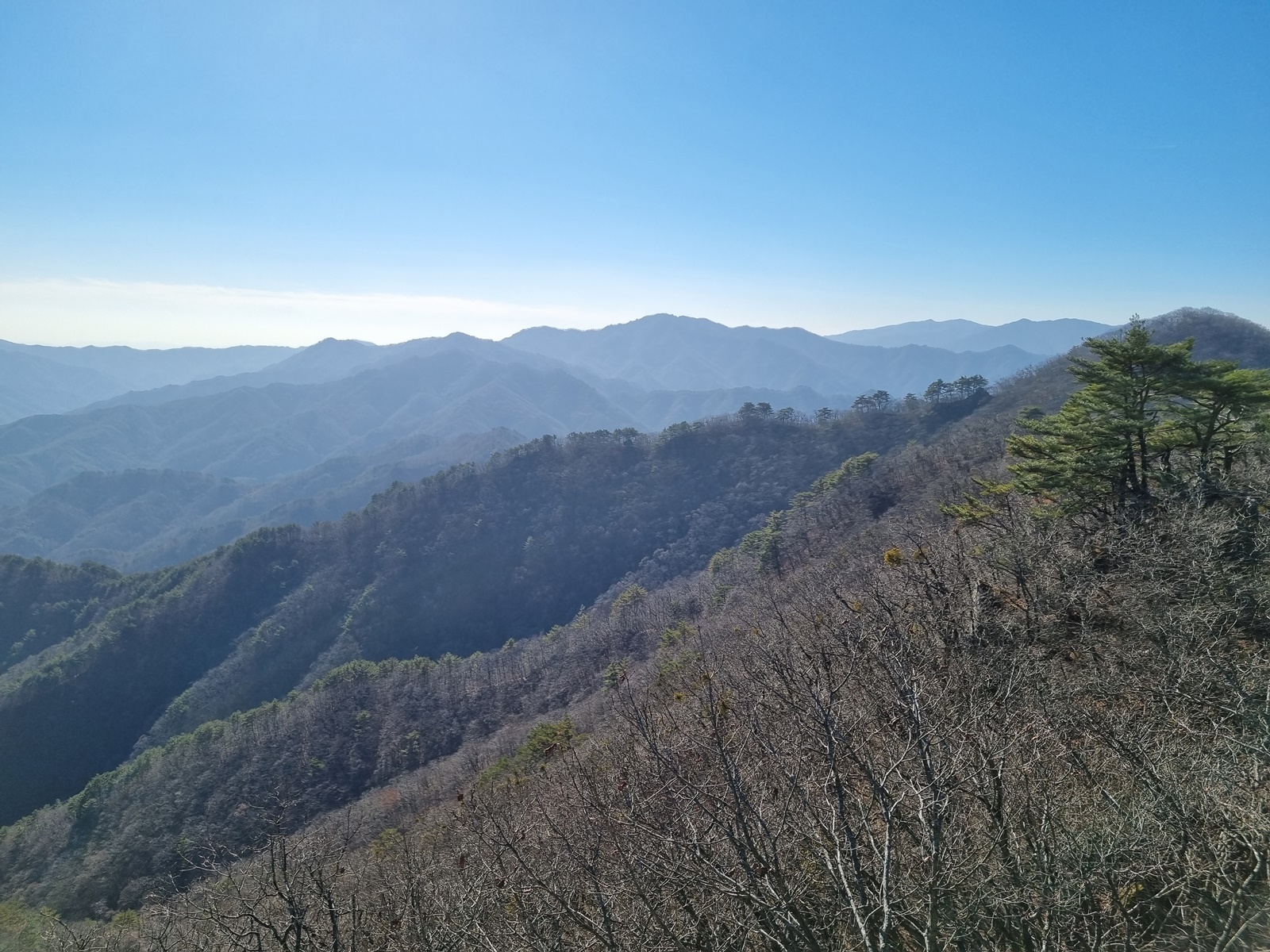 ▲ 남쪽으로 가까이는 마대산. 뒤로 형제봉. 저 멀리 소백산