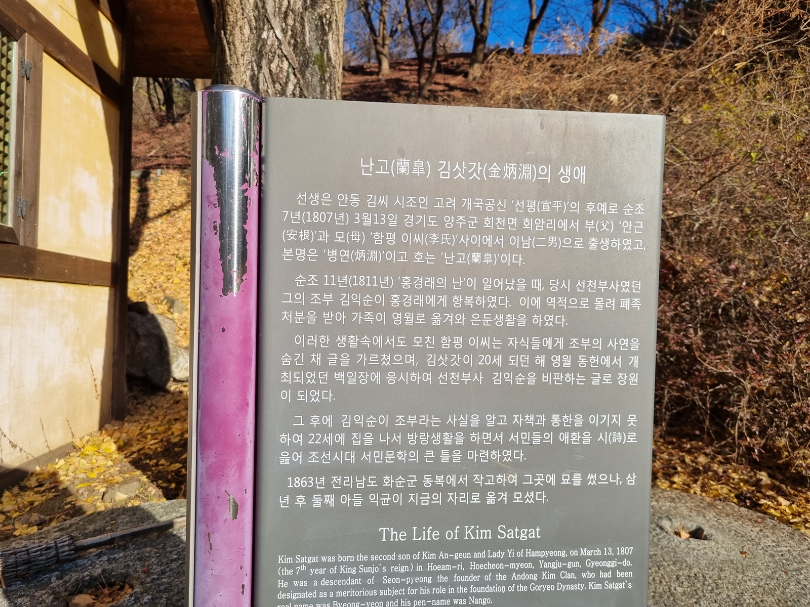 ▲ 초입에 난고 김병연(김삿갓) 기념 소공원이 있고