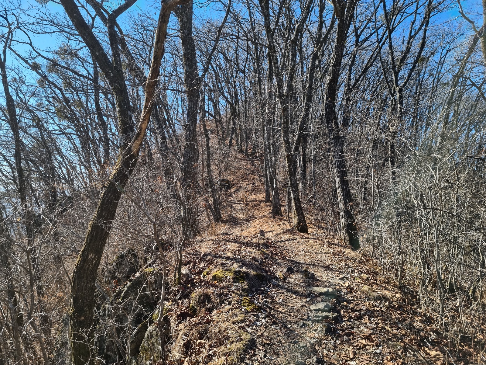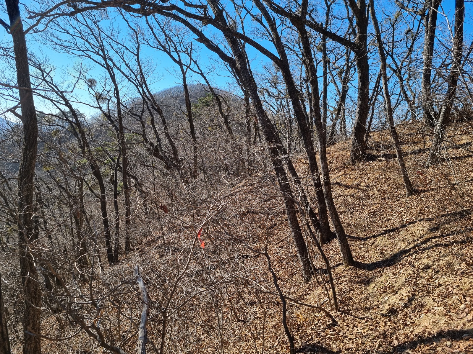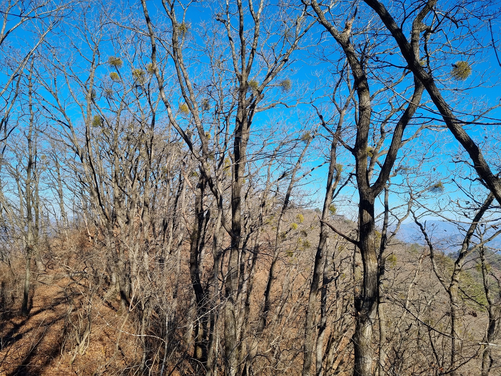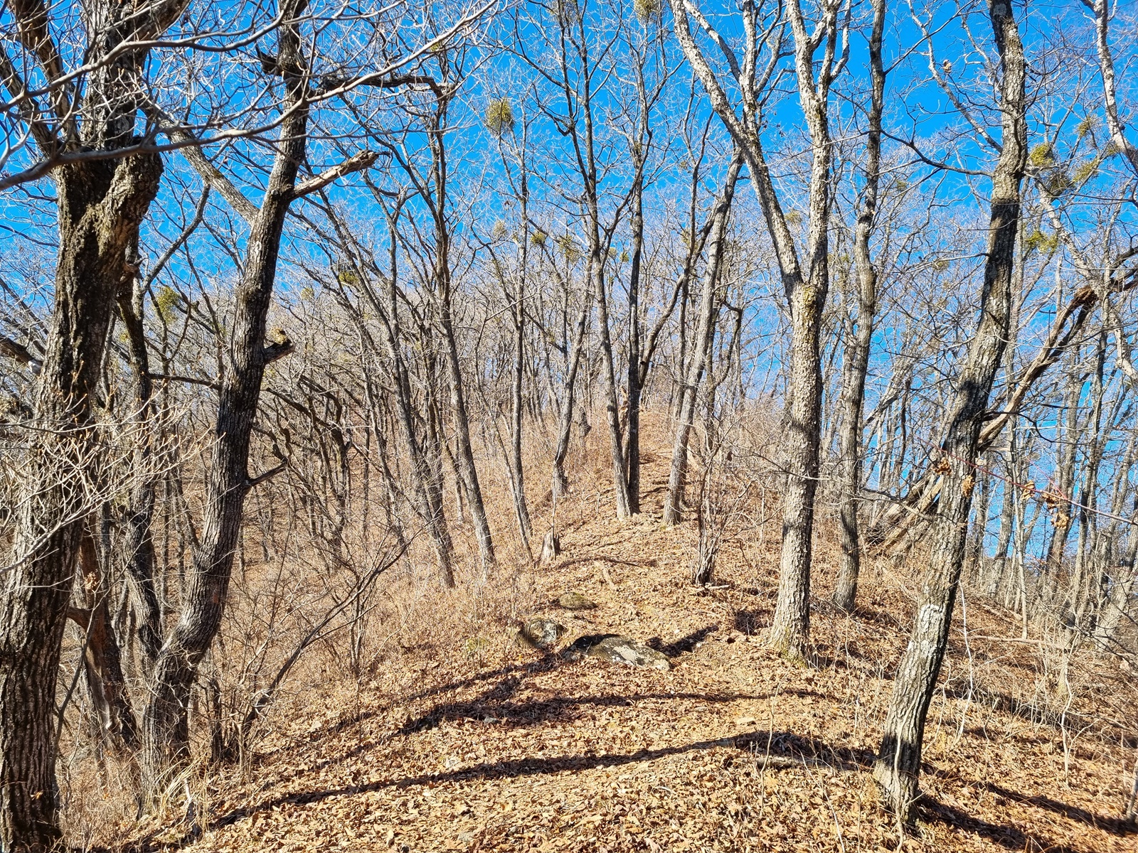 ▲ 다시 치고 오르고. 능선 주변은 온통 겨우살이 천국이다