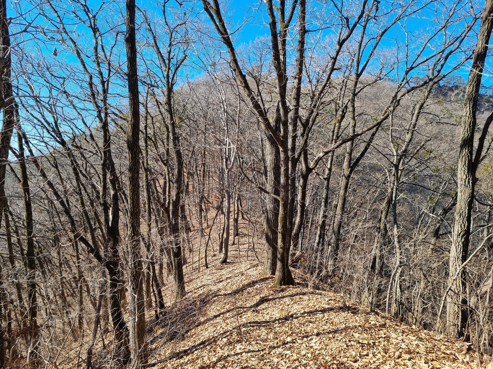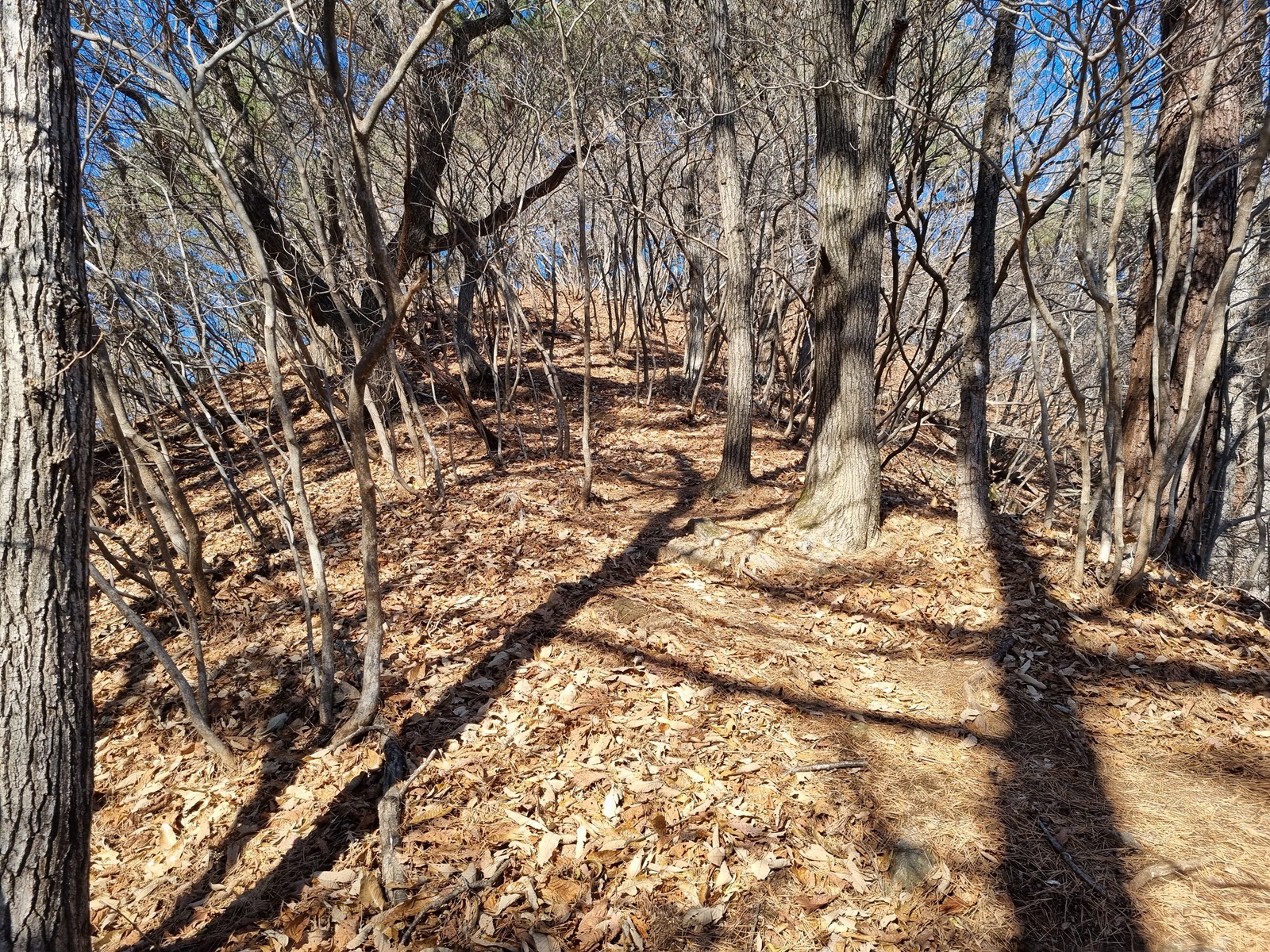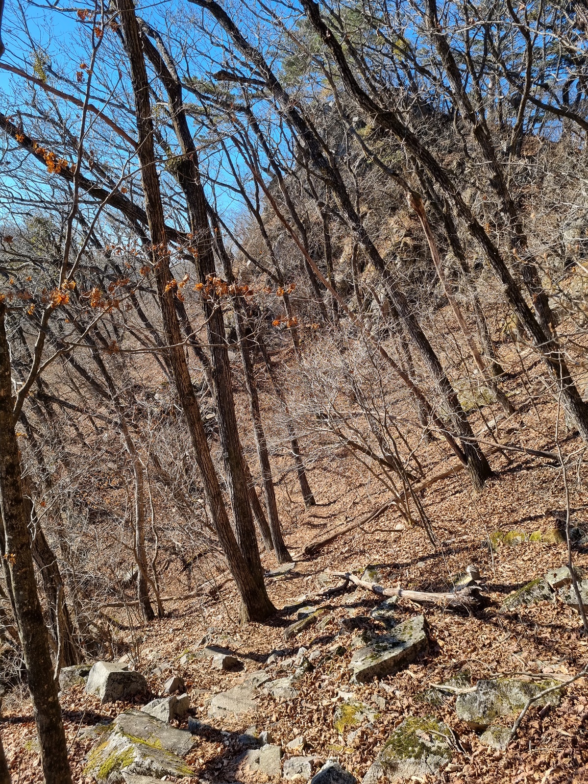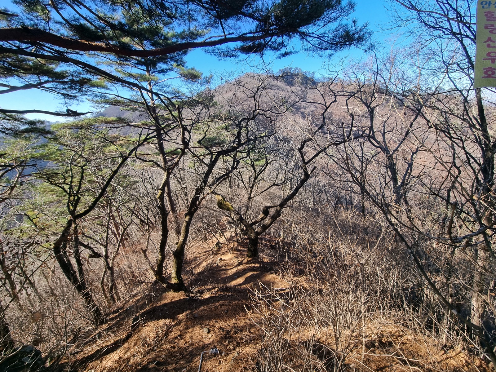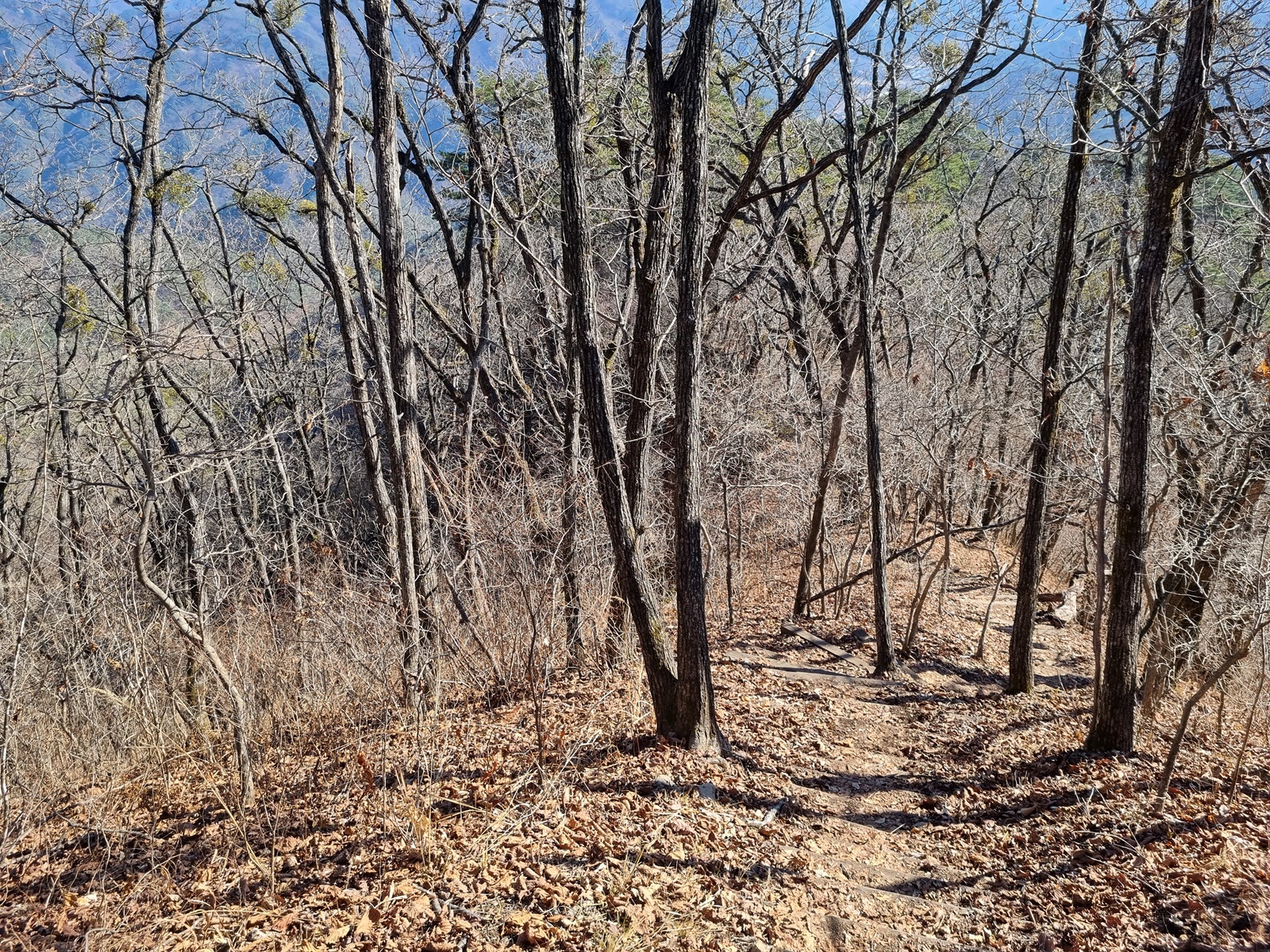 ▲ 다시 치고 오르고. 능선 주변은 온통 겨우살이 천국이다