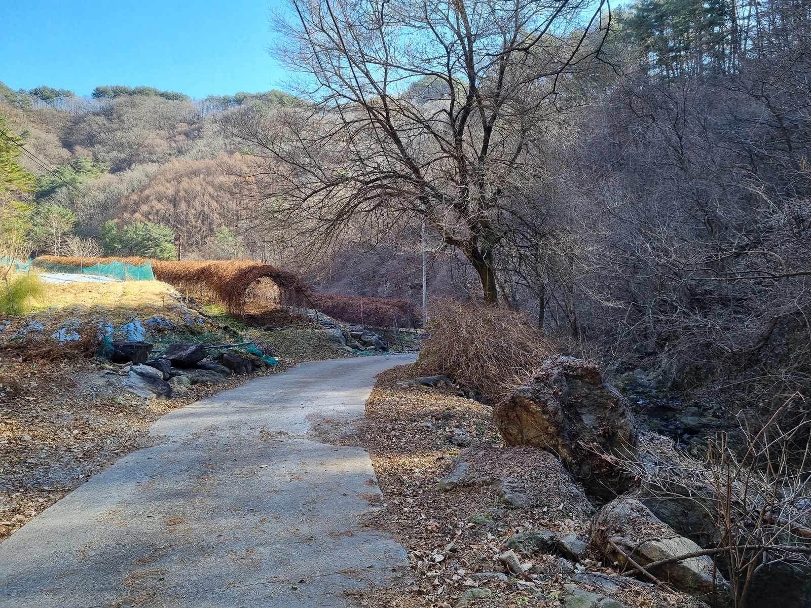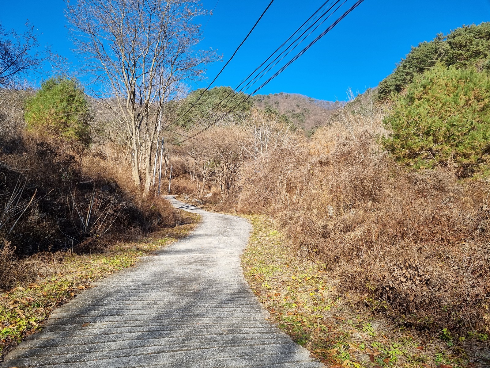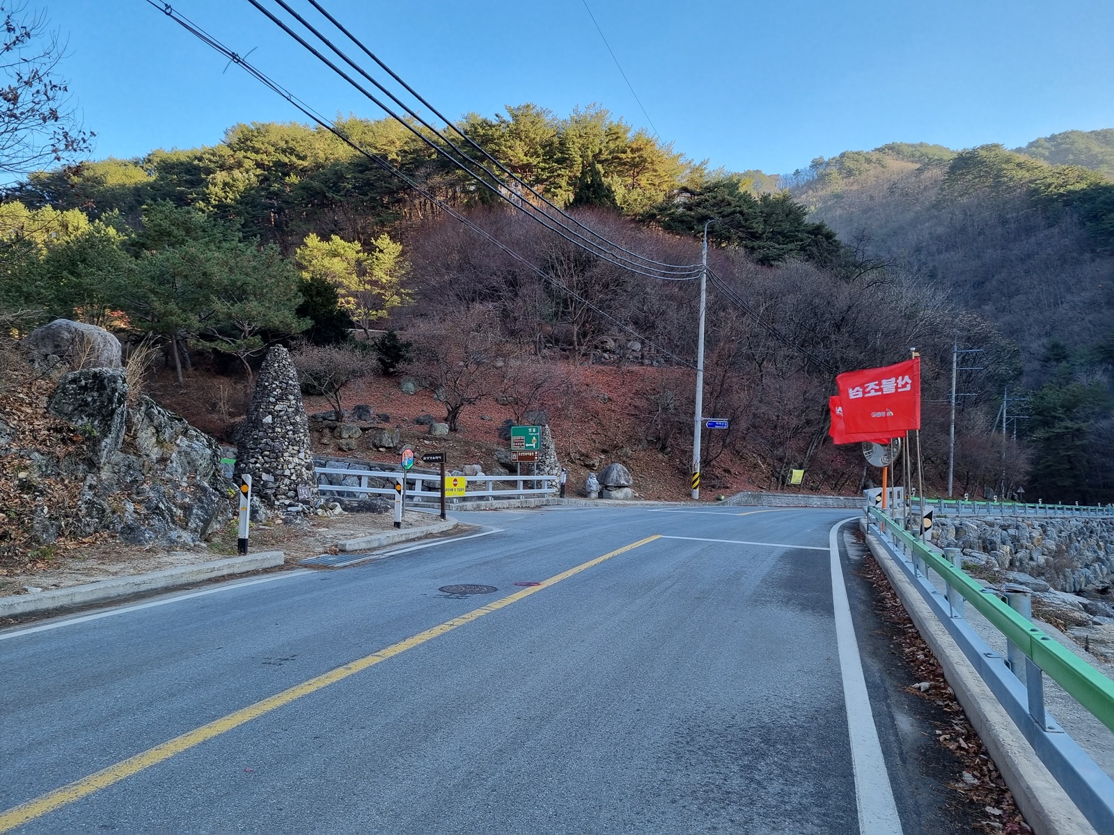 ▲ 포장된 길을 따라 오르다 보면 갈림길이 나타난다. 좌측 선낙골 포장도로와 우측 지능선 오르는 길로 갈라지는데. 정상적인 등로는 오른쪽 지능선으로 오르는 길이나 선낙골 마을이 궁금해서 그냥 직진해 보기로 한다. 나중에 알게 되지만 선낙골 마을을 거치는 등로는 통행금지 구역이었다