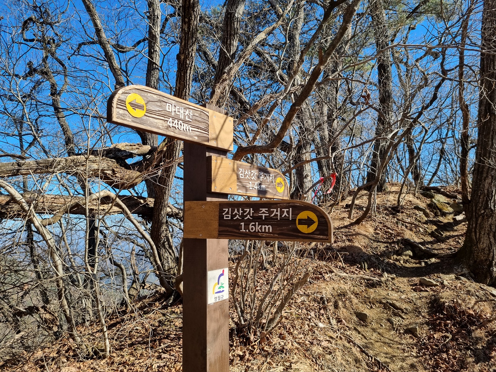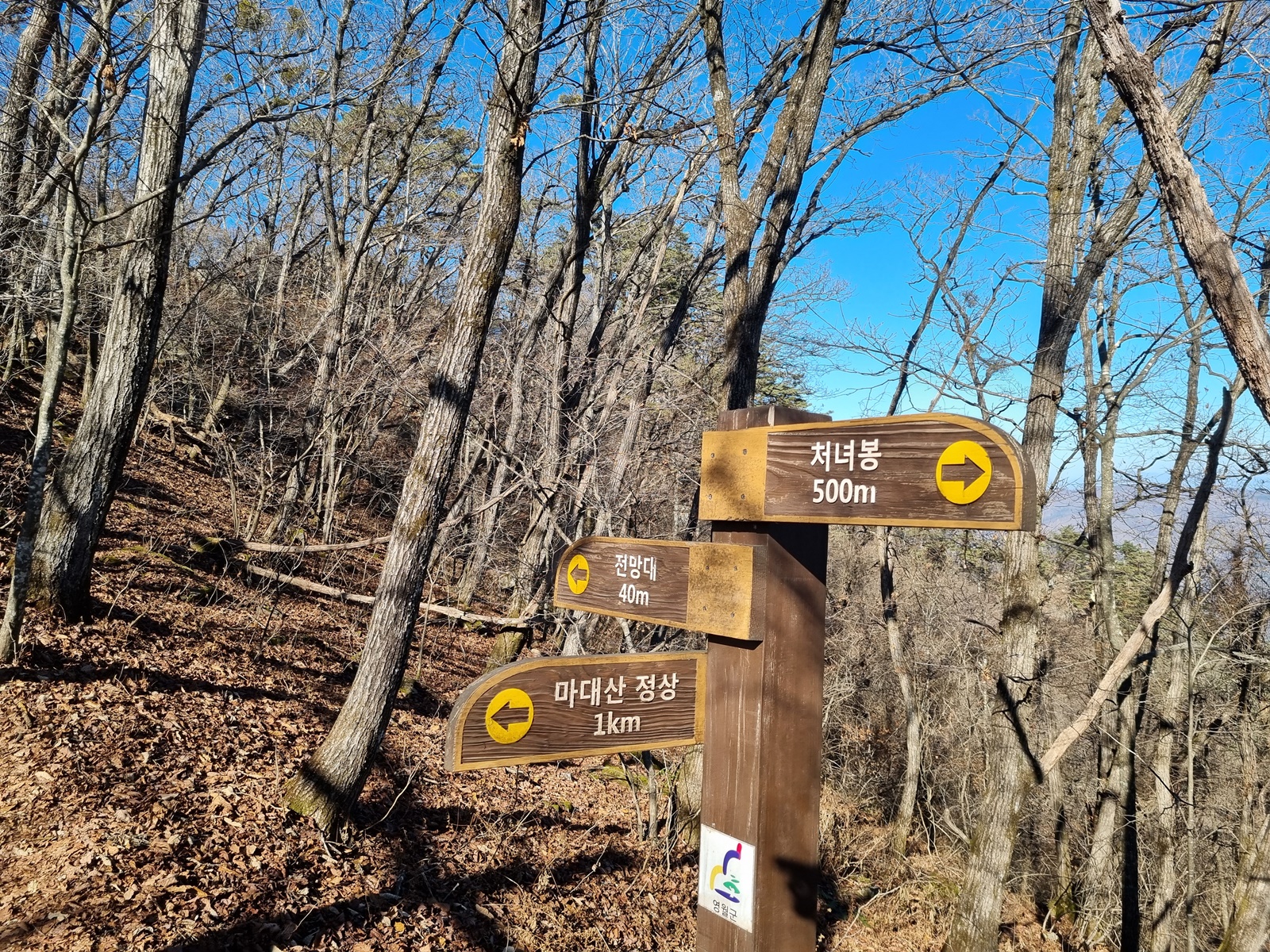 ▷ 산행 총거리 8.9㎞(GPS거리) : 김삿갓문학관 주차장 –3.4- 처녀봉(930m) –1.6- 마대산(1051m) 정상 –1.9- 김삿갓주거지 –2.0- 김삿갓문학관 주차장