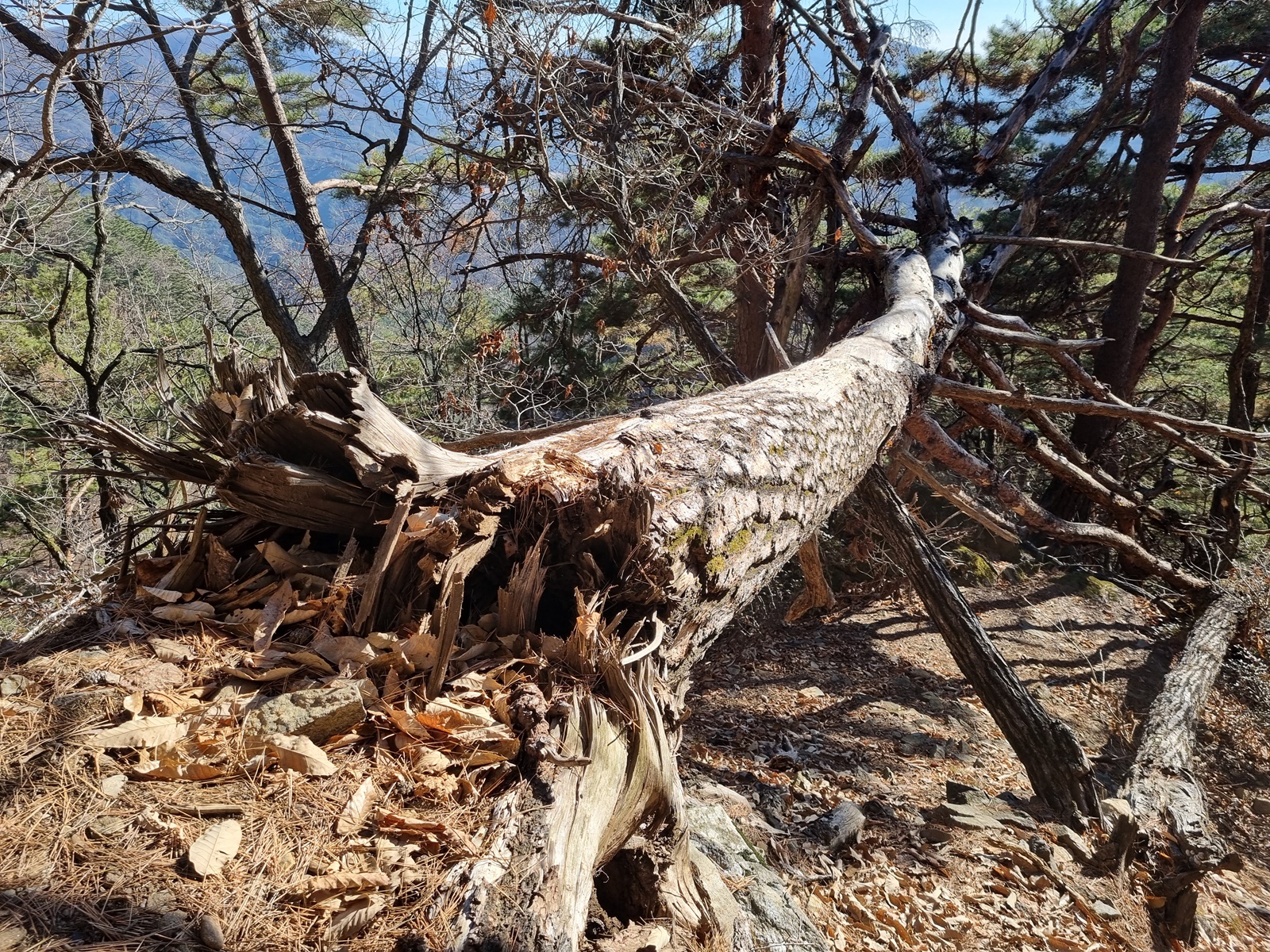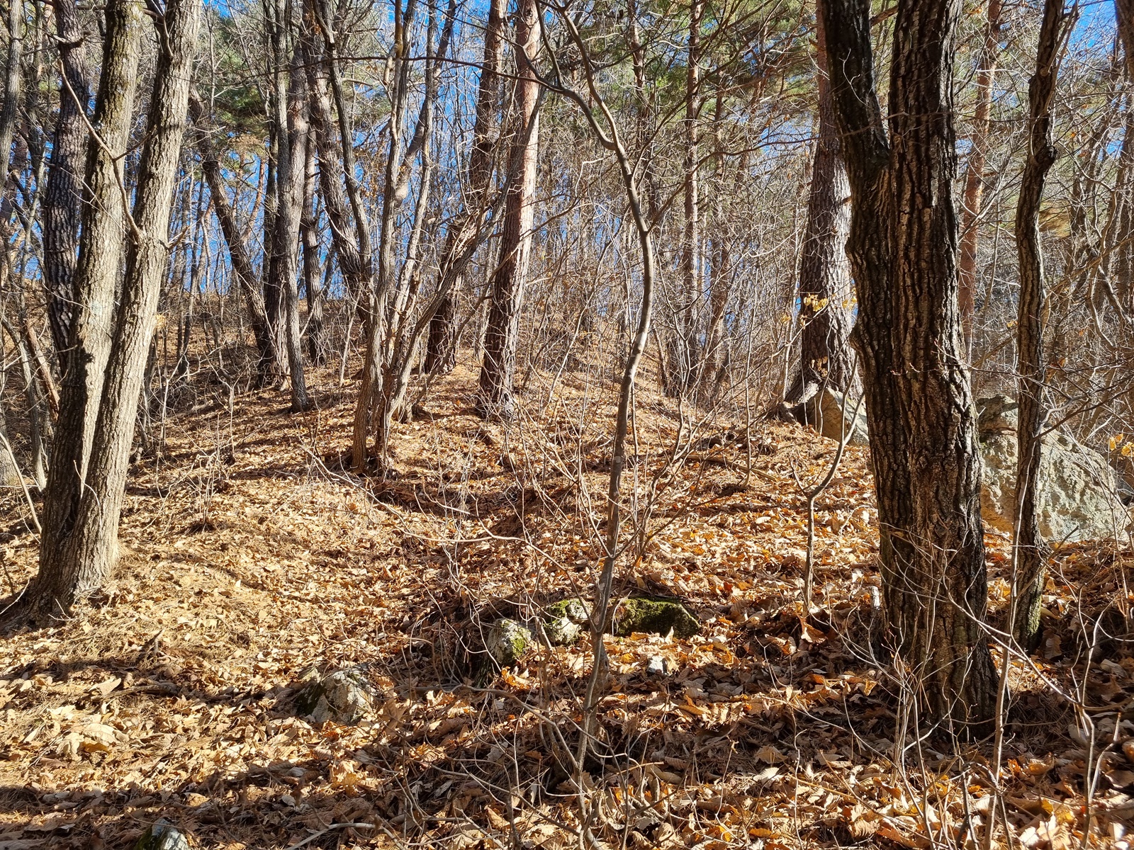 ▲ 집 바로 뒤에 큰 소나무가 쓰러져 있는 지능선으로 올라서자 희미한 길이 나타난다