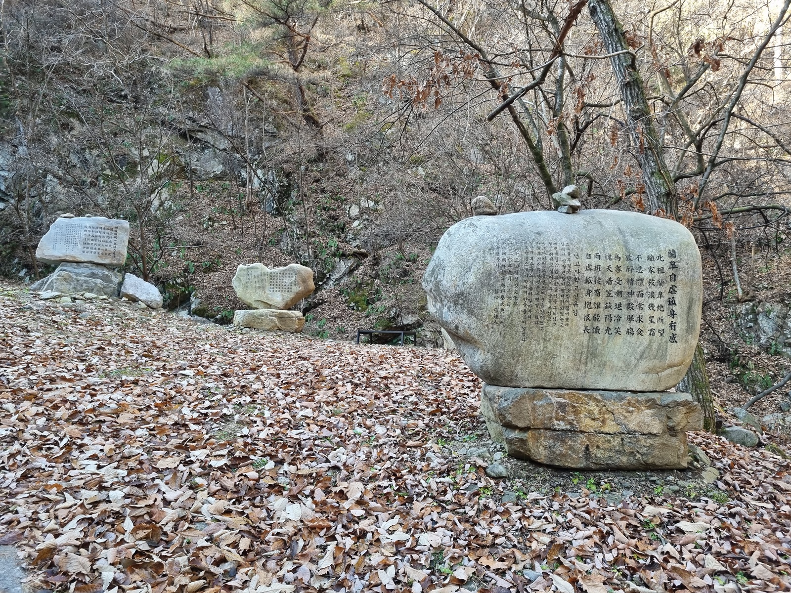 ▲ 많은 시비가 있는 계곡을 따라서 오른다