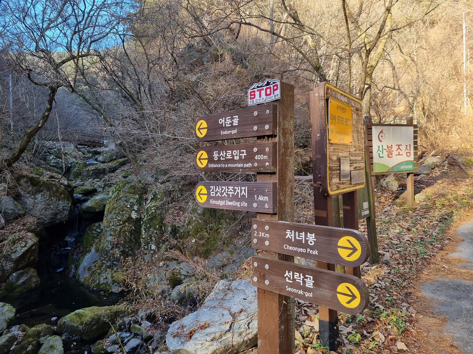 ▲ 선낙골과 어둔이골 갈림길. 우측 선낙골 방향으로
