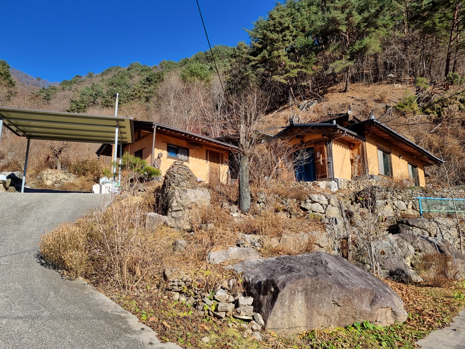 ▲ 강아지들이 큰소리로 컹컹 짓어대어 소란스럽지 않도록 빠르고 조용하게 집 마당을 통과하여 골짜기로 진입한다