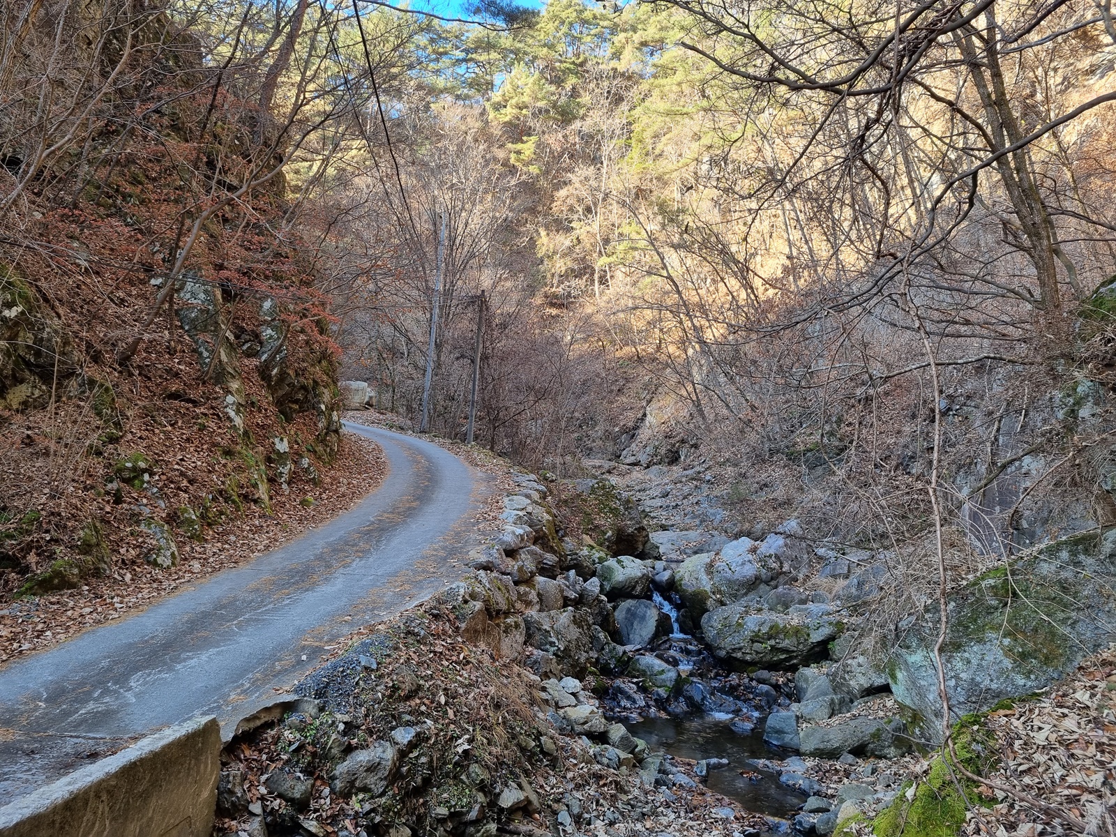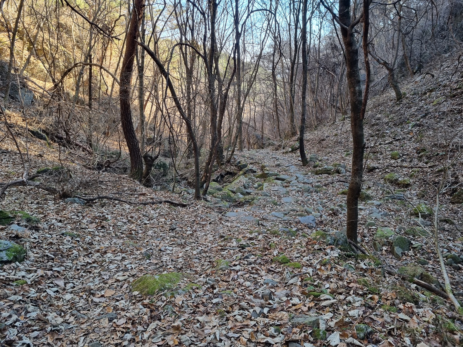 ▲ 예전에 산판길이었던 듯. 굵은 돌이 깔린 널직한 길을 따라서