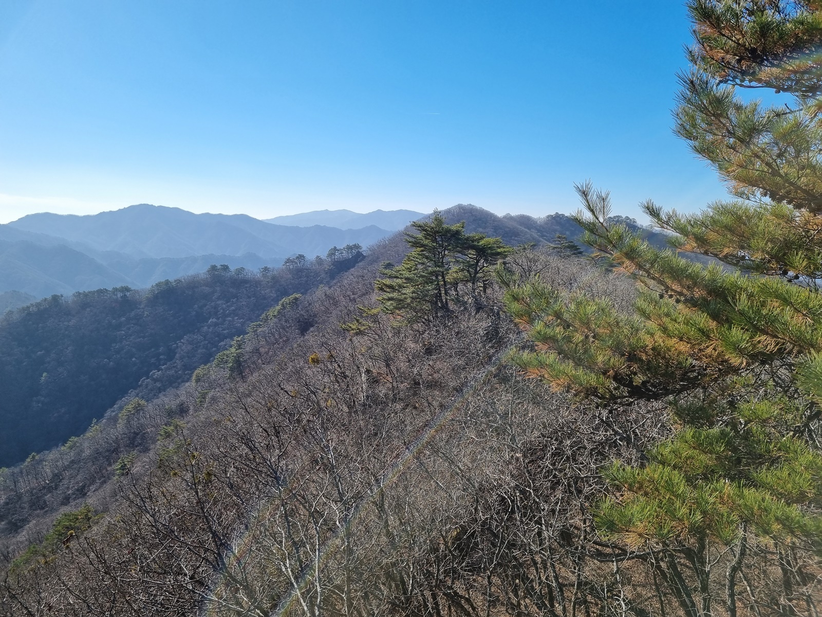 ▲ 좌측으로 처녀봉이 유독 뾰족하게 보인다. 정상에 여러그루의 키큰 소나무가 있어서 그렇게 보이는 듯
